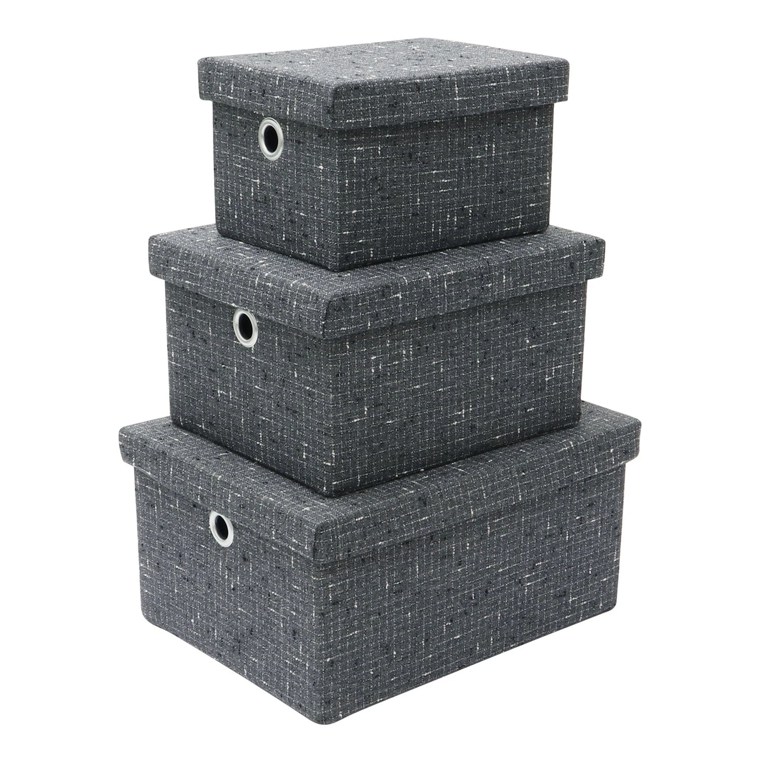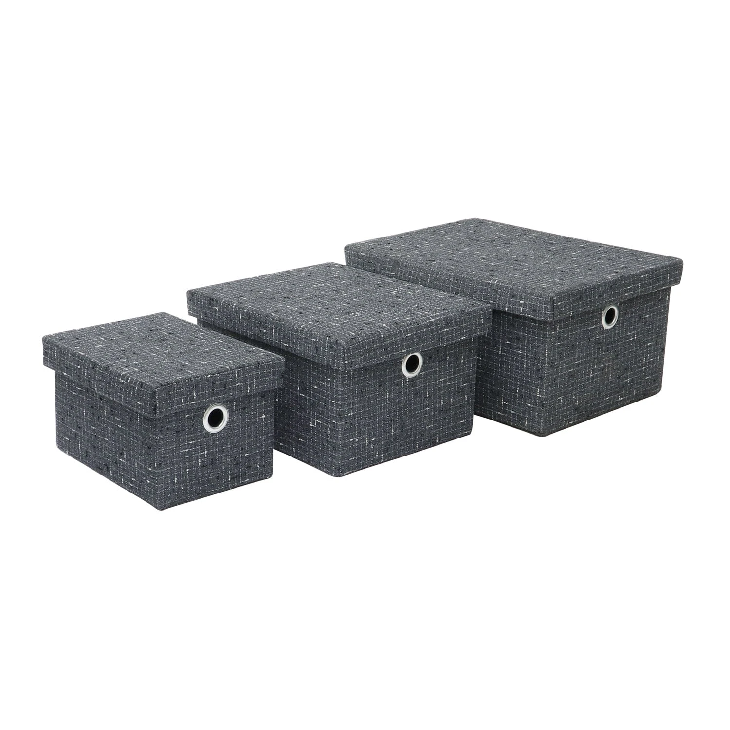 - Complete set of 3 rectangular storage boxes with lids.