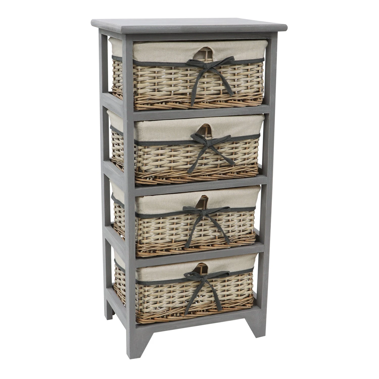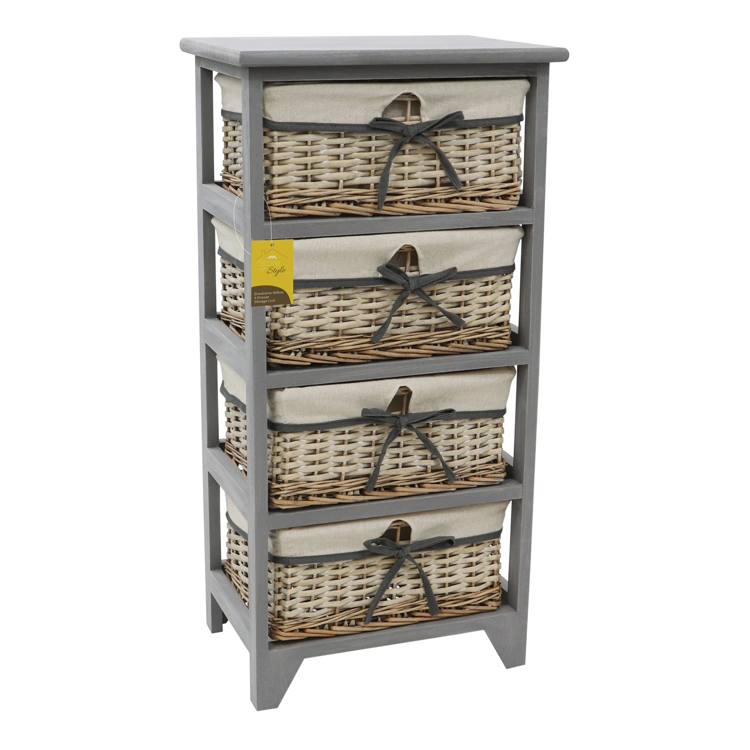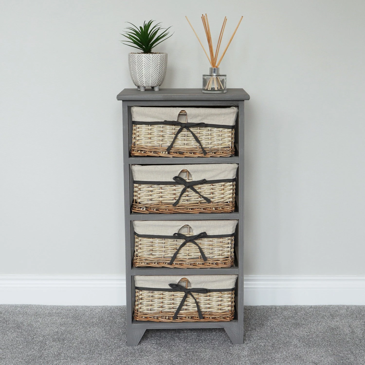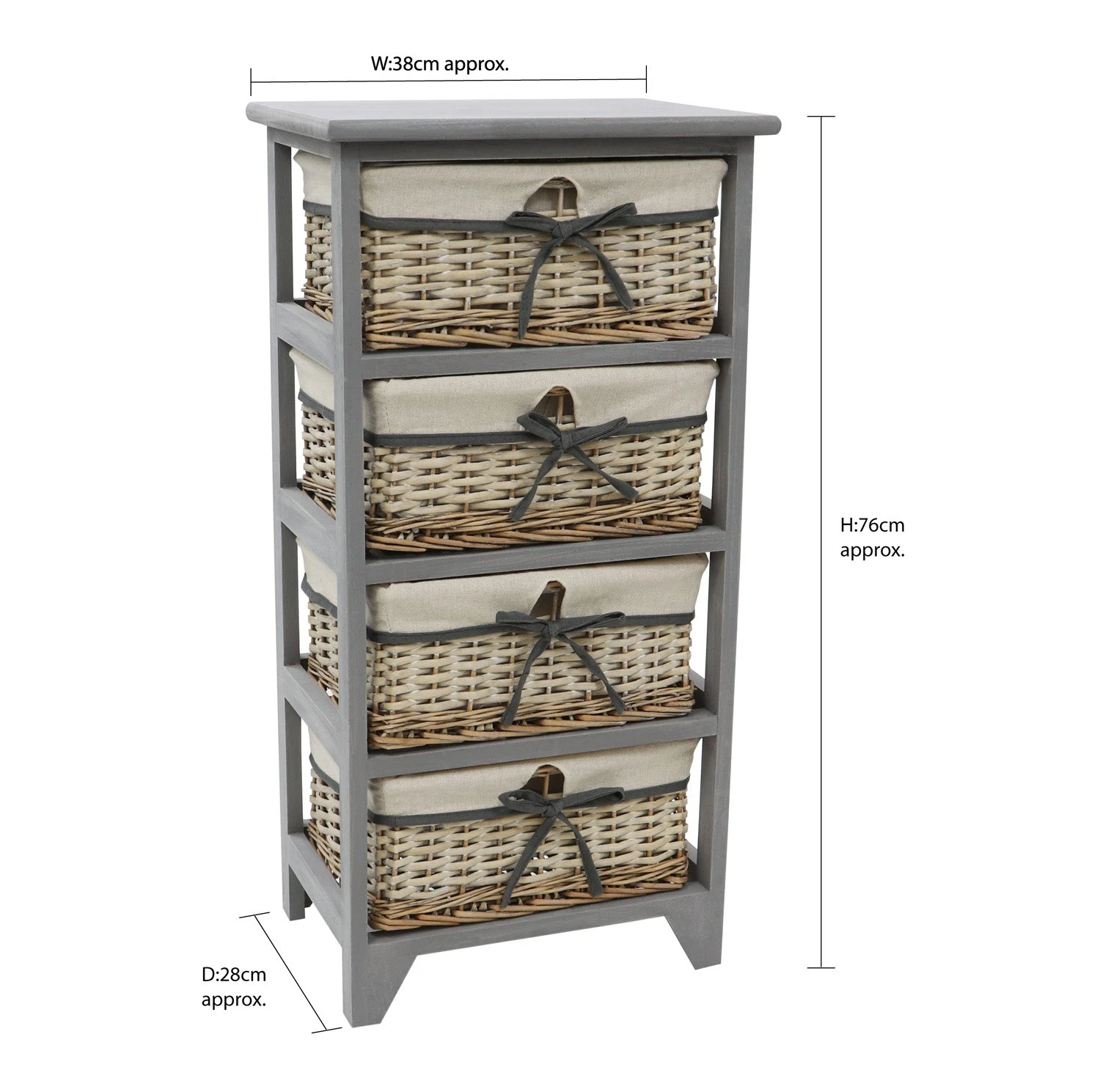 Storage is an important part of any home and this Sherborne four-drawer storage unit is an ideal solution. The four woven Willow baskets create a tall furniture piece. Each basket has a natural cotton liner with a grey trim and tie front bow, while the frame is made from wood with a matt grey finish, making it ideal for your living area.