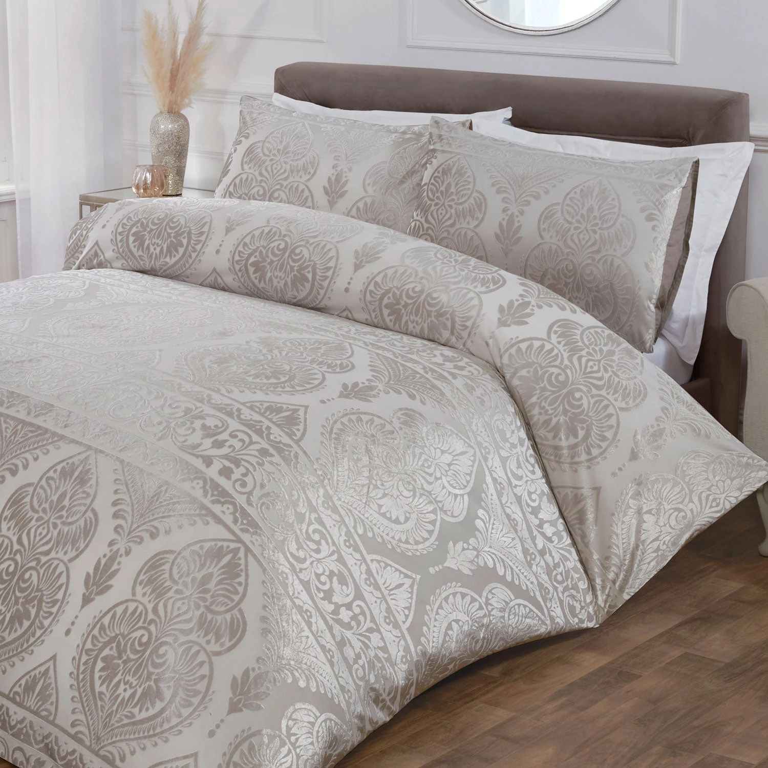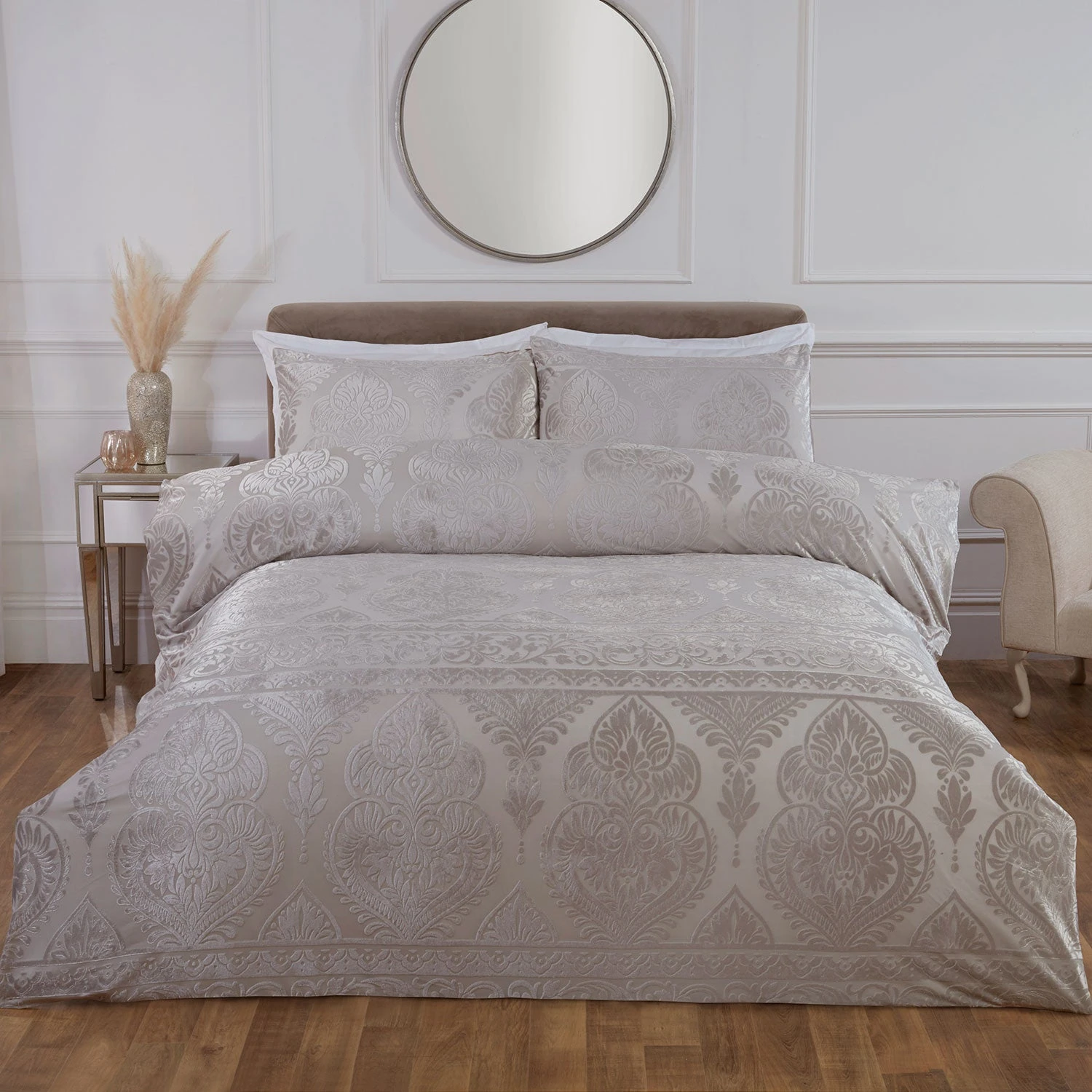 For a touch of luxury our Sicily Velvet Jacquard duvet set exudes elegance and sophistication. This soft velvet face design creates a tactile and rich depth adding a touch of beauty and luxury to your sleeping space.