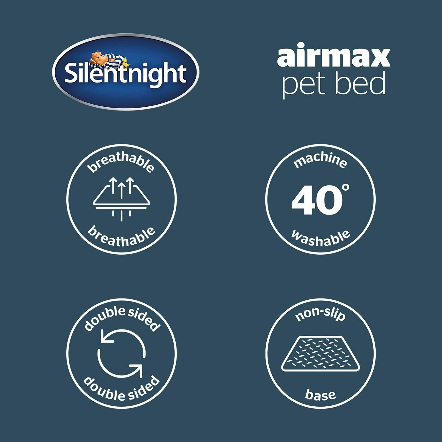 Silentnight pet beds have been lovingly created with the very same technology used in their human products! The Airmax pet bed is the perfect place for your pet to snuggle down and relax. The outer fabric is durable, and the inside is covered in soft and cosy teddy fleece lining. The reversible cushion uses our best sleep technology with Airmax walls. This mesh fabric allows air to travel through the cushion to prevent overheating and to help keep your pet at a comfortable temperature. One side of the cushion is covered with cosy teddy fleece, whilst the other side features a cooler quilted polyester wicking fabric.