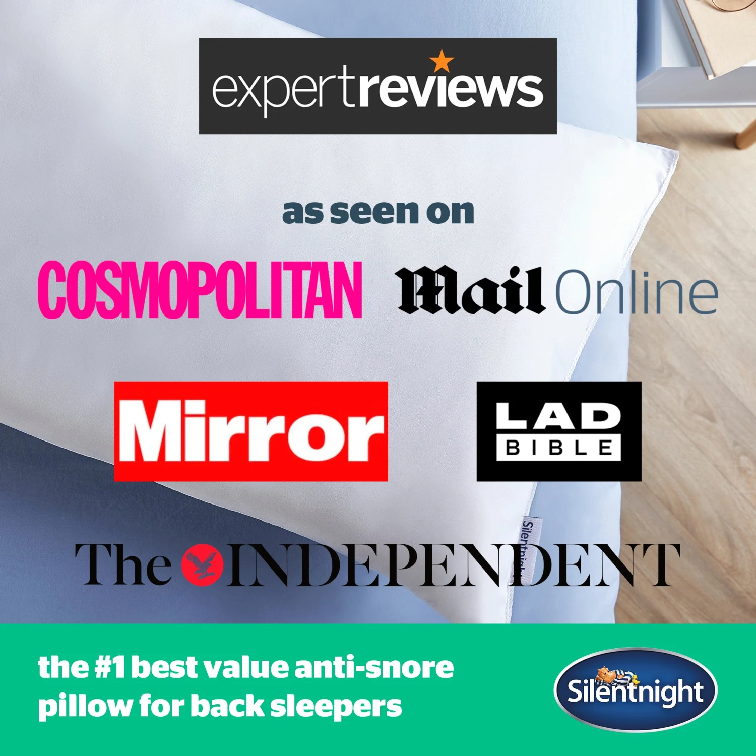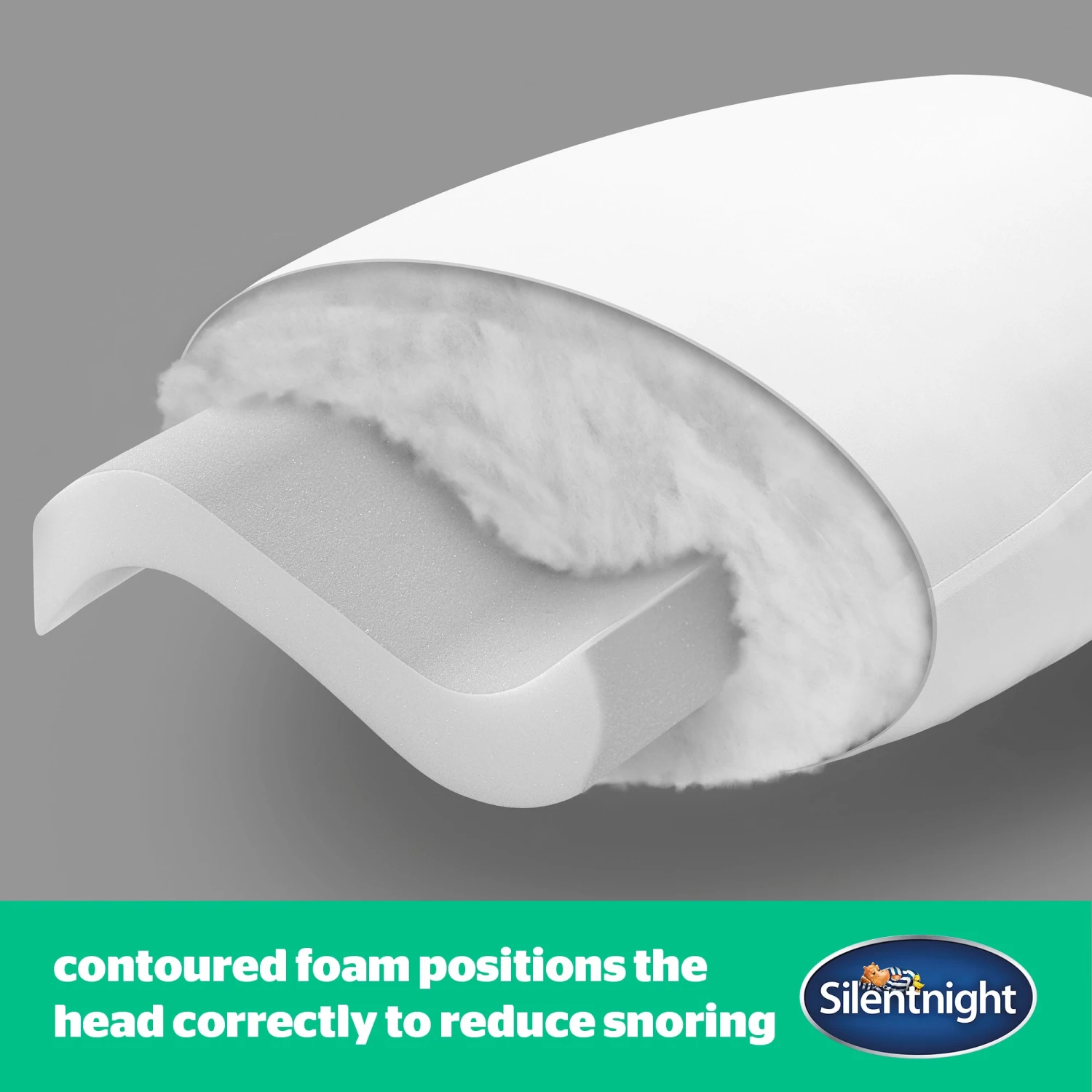 Silentnight Anti Snore Pillow has been cleverly designed to help reduce snoring. Whilst we don’t claim to cure your snoring completely, the Silentnight Anti-snore Pillow can help to reduce snoring, or your levels of snoring. Tested by the British Snoring & Sleep Apnoea Association who found the pillow reduced snoring frequency and volume by approximately 50%. Within the centre of the pillow is an ergonomically shaped foam core which has been designed to support your head and neck, keeping it at just the right position to improve your breathing. This in turn can help to reduce snoring. The foam is surrounded by hollowfibre, so the pillow is soft, but supportive and is ideal for people who sleep on their back or side.Â