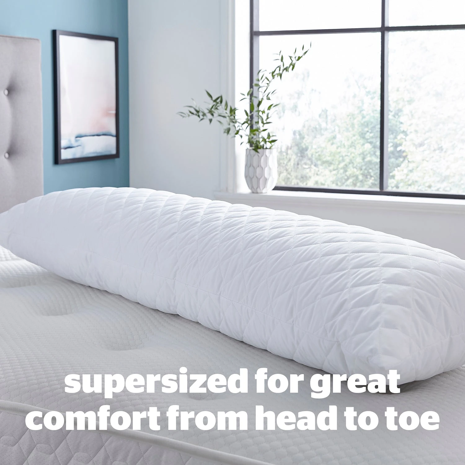 - SUPERSIZED: The Silentnight Body Support pillow measures 147 x 48cm / 4ft 8inches and fits the natural contours of the body to provide full support from tip to toe.