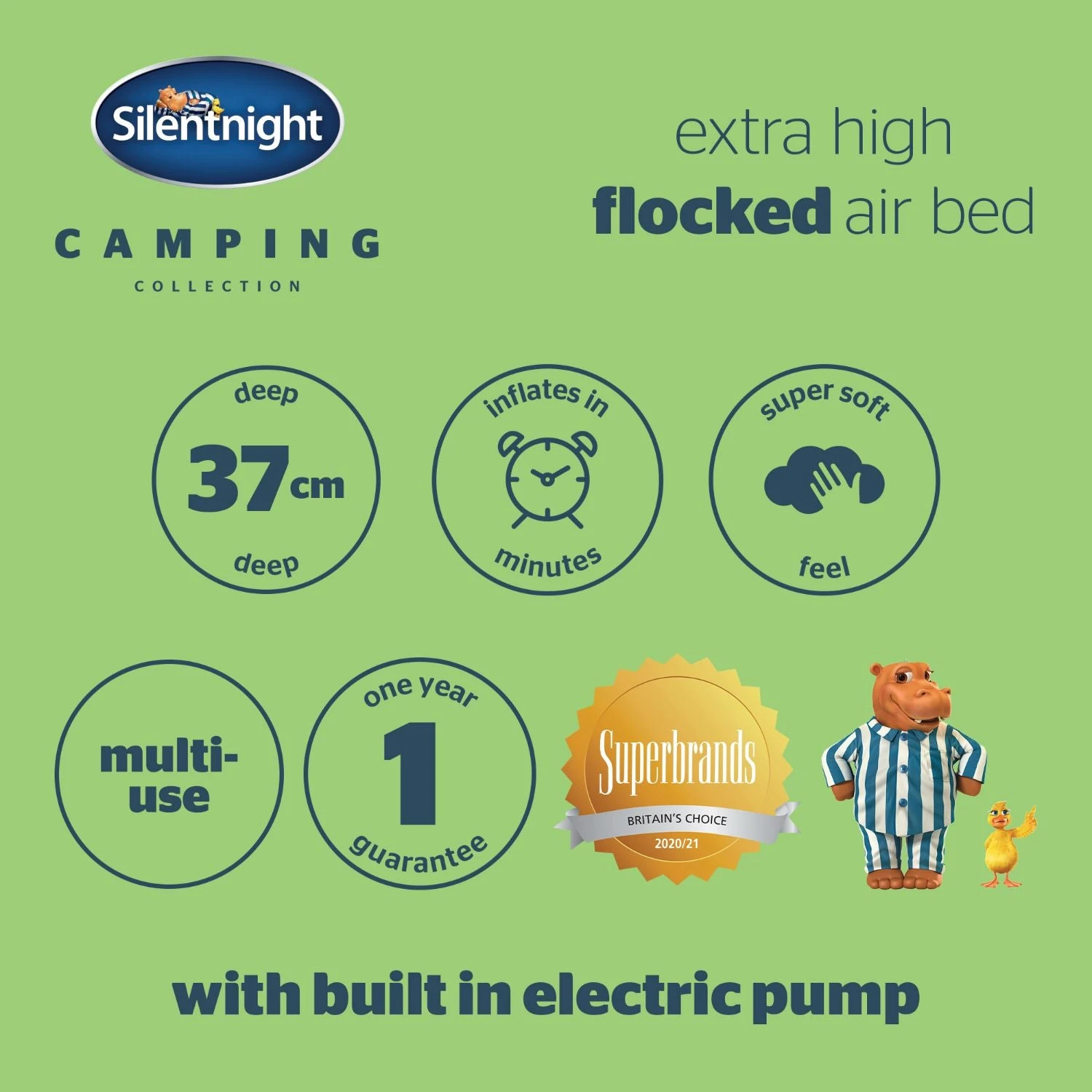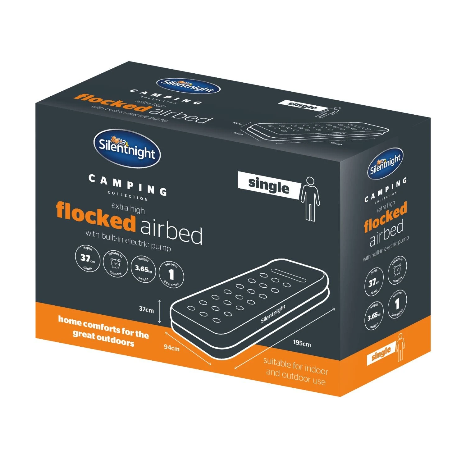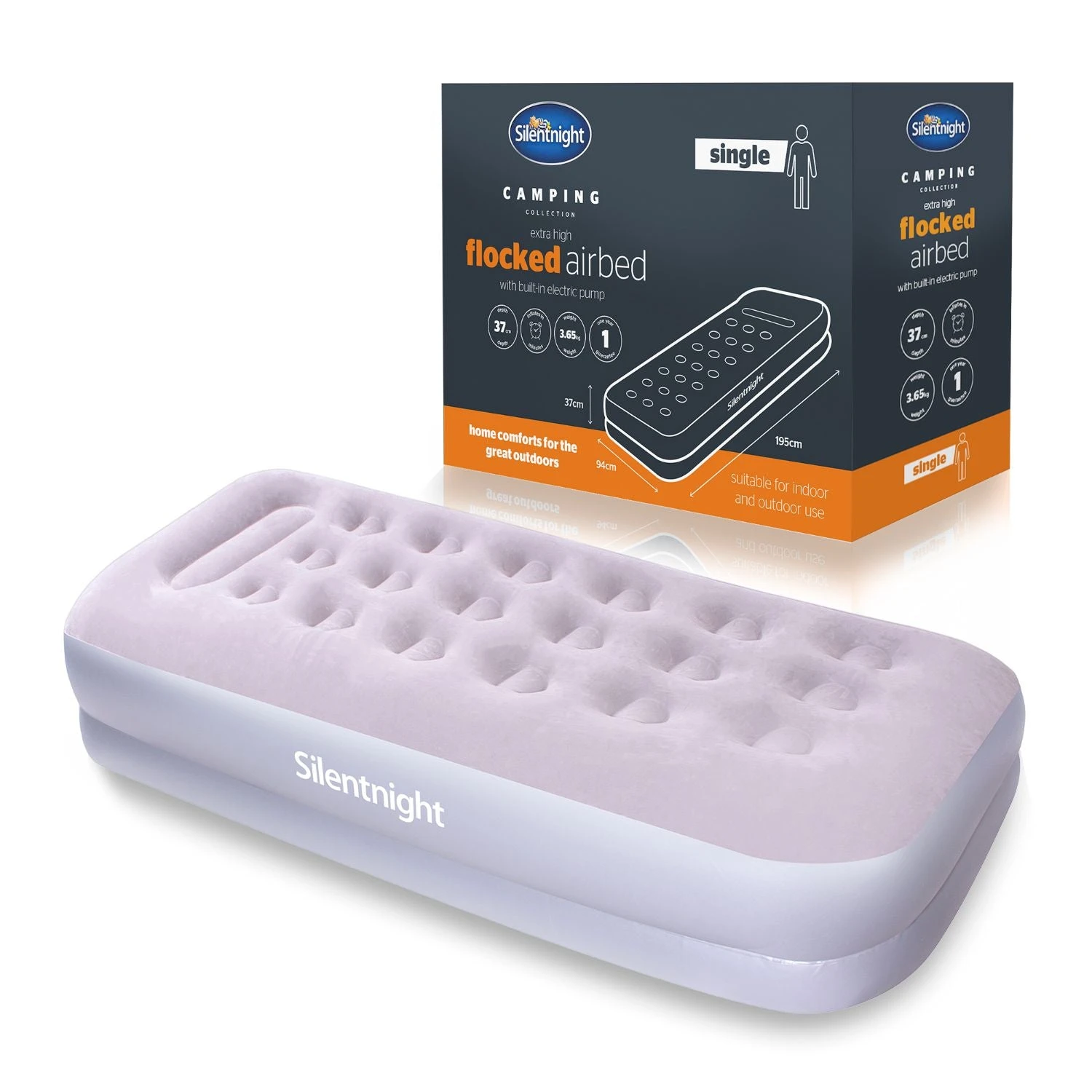 - COMFORTABLE SUPPORT: The Silentnight Extra High Flocked Airbed is supportive and comfortable. The beam construction offers full body support so that you can experience the comfort of home in the great outdoors, from the UK’s most trusted sleep brand.