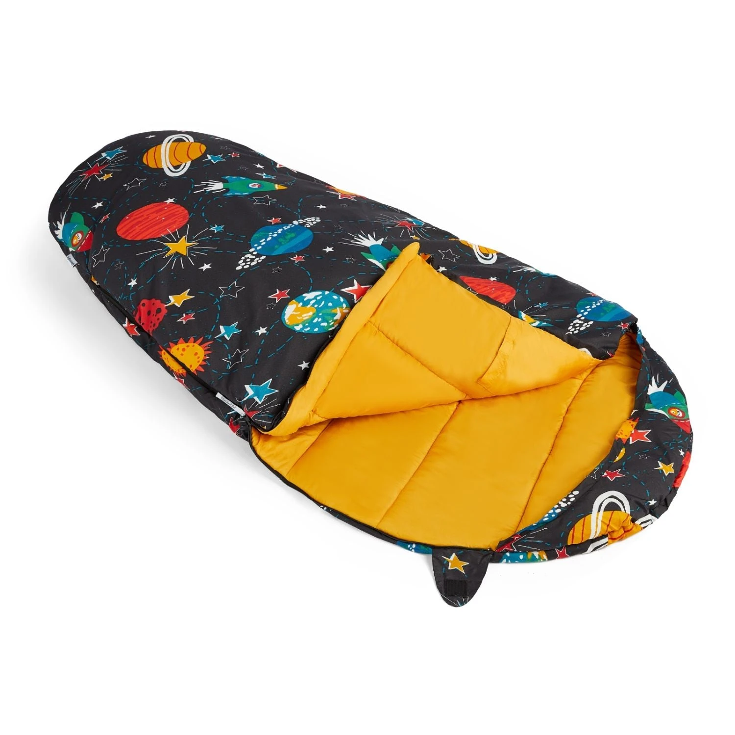 Our 3 seasons kids sleeping bag is ideal for spring and summer trips. Made with soft touch fabric and filled with snuggly Softfill™ fibres for ultimate comfort. Our fun, colourful prints will only add to the adventure – perfect for nights under the stars or sleepovers at a friend’s house.