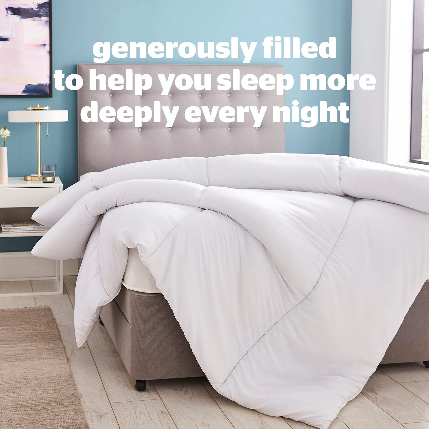 Sink into deeper sleep with this Silentnight Deep Sleep 15 Tog Duvet. Generously filled for endless comfort and support, helping you to sleep more deeply every night. The Silentnight Deep Sleep Duvet is generously filled with hollowfibre and covered in soft microfibre which results in a soft, cosy and lofty duvet that will envelop you with comfort.