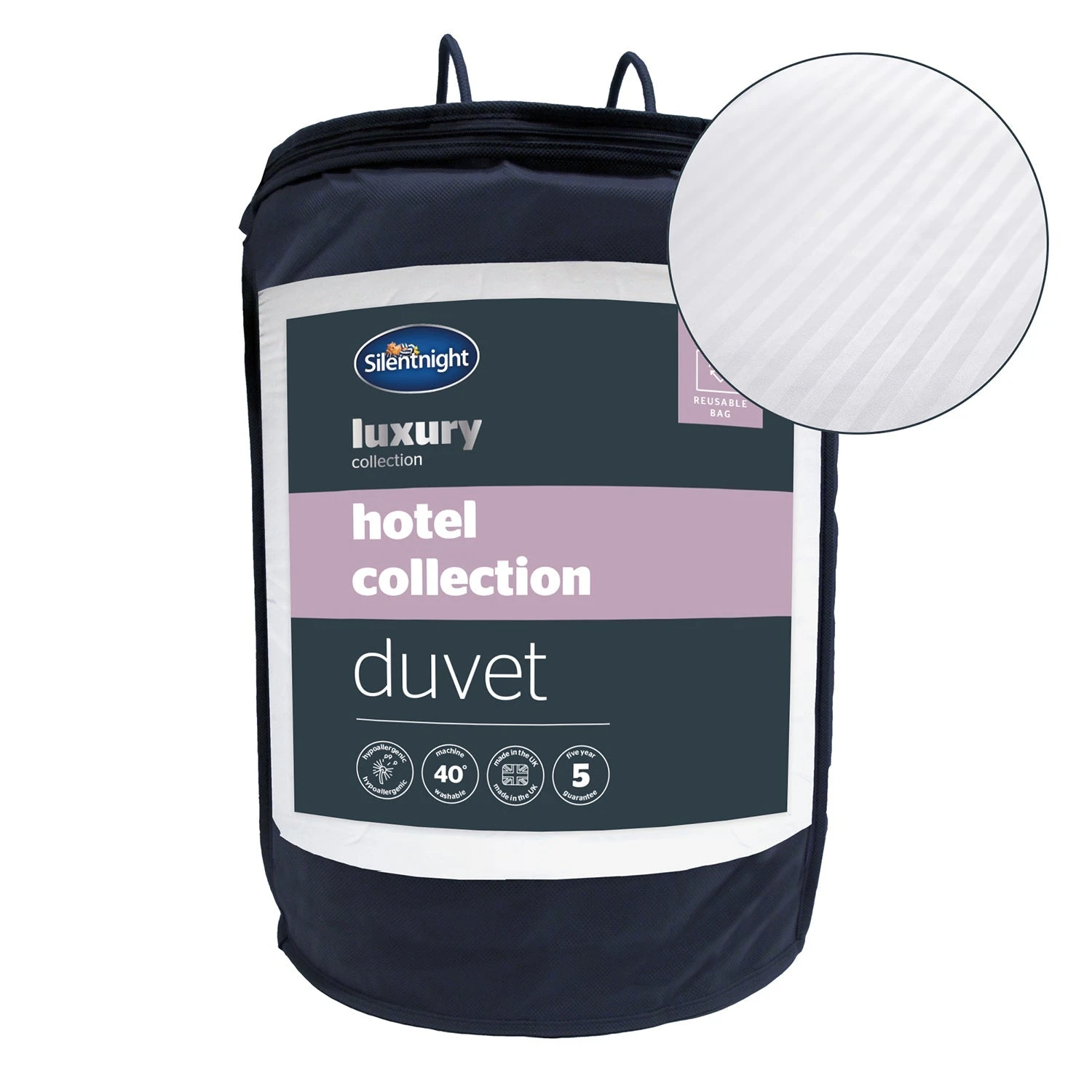 Indulge in the 5 star comfort of a hotel every night with this luxuriously soft and silky boutique style duvet, featuring an elegant embossed finish. The Silentnight Hotel Collection 10.5 tog duvet is encased in a wonderfully stylish and incredibly soft check embossed cover and filled with the finest sumptuous fibres for luxurious comfort. The duvet is hypoallergenic which means it is kind to skin and does not include any contents likely to cause allergies. You can keep enjoying hotel quality night after night as it’s fully machine washable.