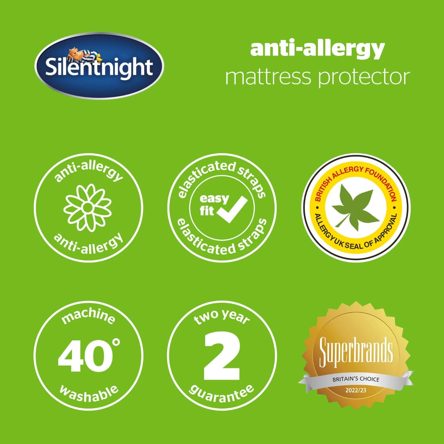 Our anti-allergy fibres are approved by the British Allergy Foundation, which means they have the ultimate seal of approval. Our fibres have been scientifically tested and are proven to reduce or remove allergens from the indoor environment. The mattress protector will protect and prolong the life of your mattress, helping to shield spills, stains and general wear and tear. The elasticated straps are easy to fit and help to keep you protector firmly in place on your mattress.
