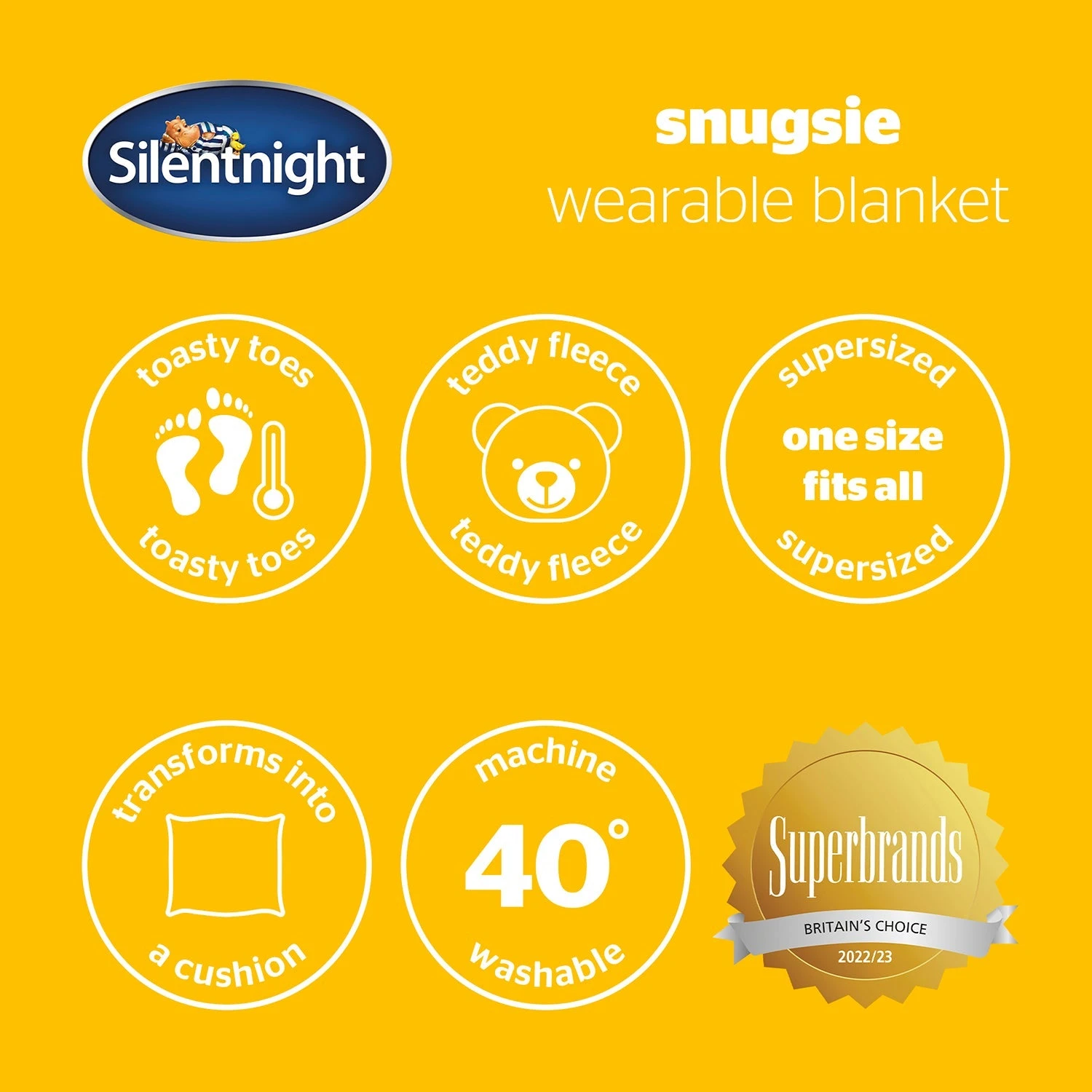 The Silentnight Snugsie Wearable Sleeved Blanket has been created to help you stay snug and cosy as you relax, whether that’s on the sofa or in bed. The 2 in 1 function, super soft and cosy teddy fleece sleeved blanket will keep you nice and toasty with a handy foot pocket to keep your toes warm too! Transforming into a teddy fleece cushion for easy storage and comfort.