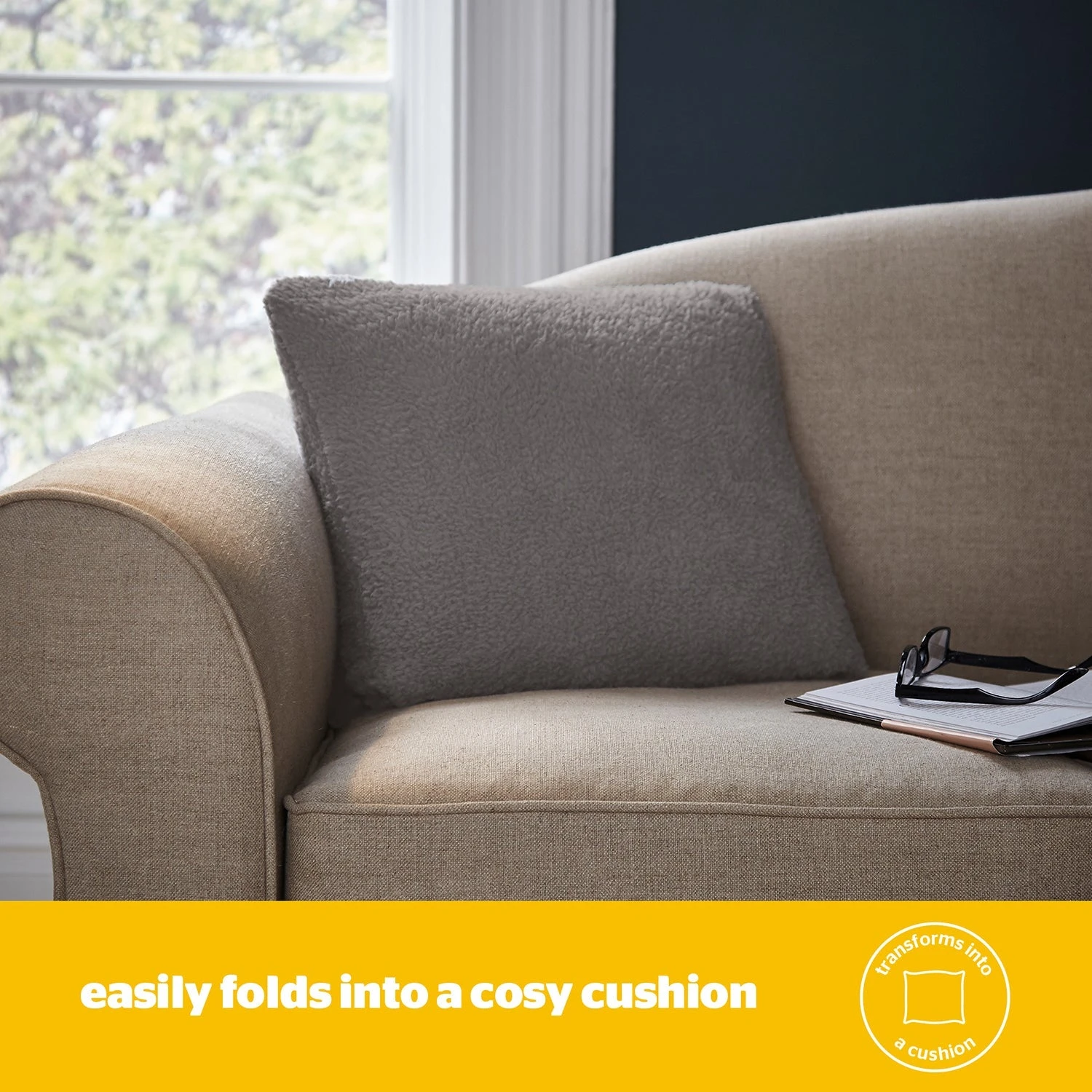 - 2 IN 1: Transforms into a cushion once you have finished wearing as a cosy wearable blanket, for easy storage. Simply use the foot pocket to fold the blanket away!