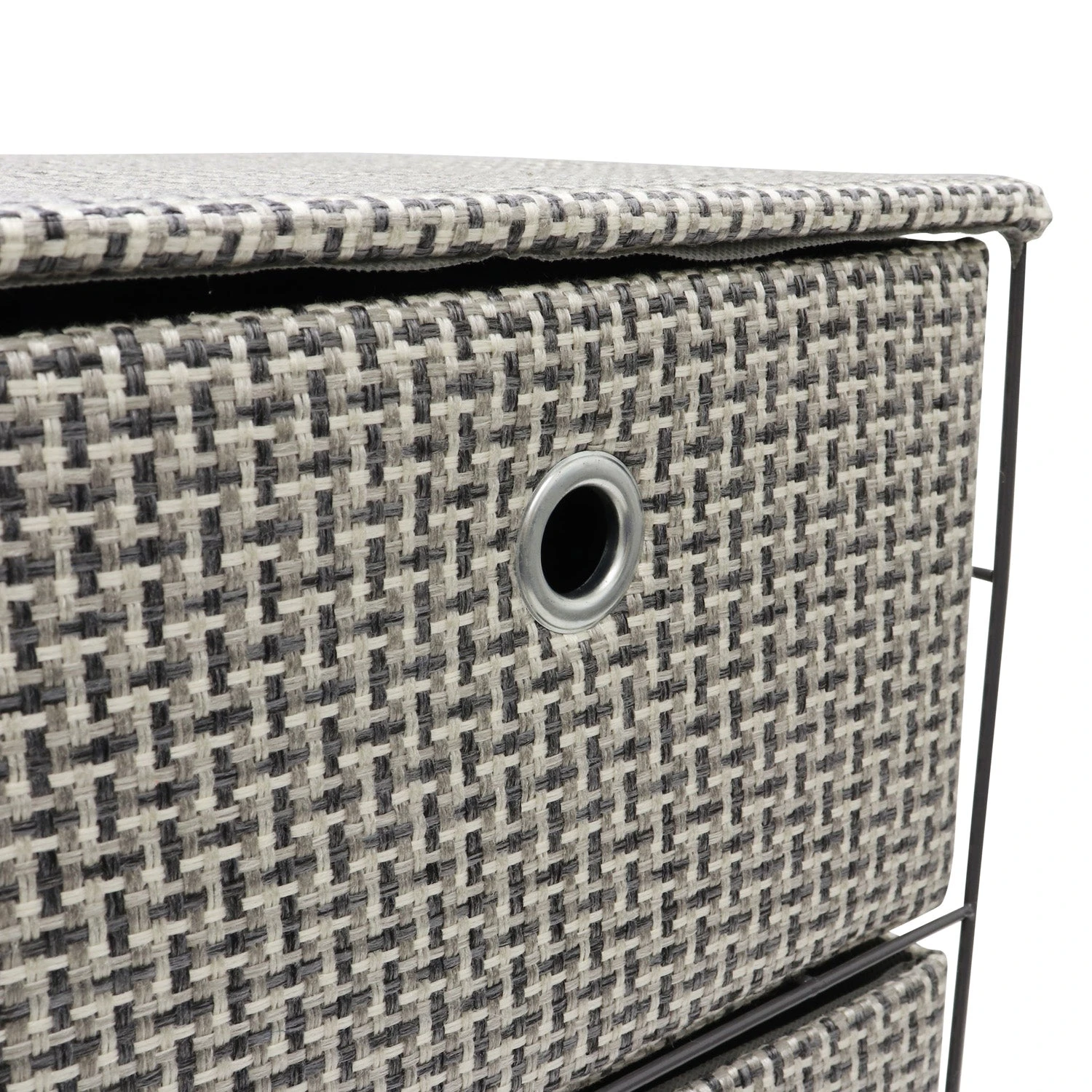 Our Silva storage collection reflects our woven heritage with a striking basket weave fabric in muted grey tones, creating a dog tooth effect, ideal for any interior decor.