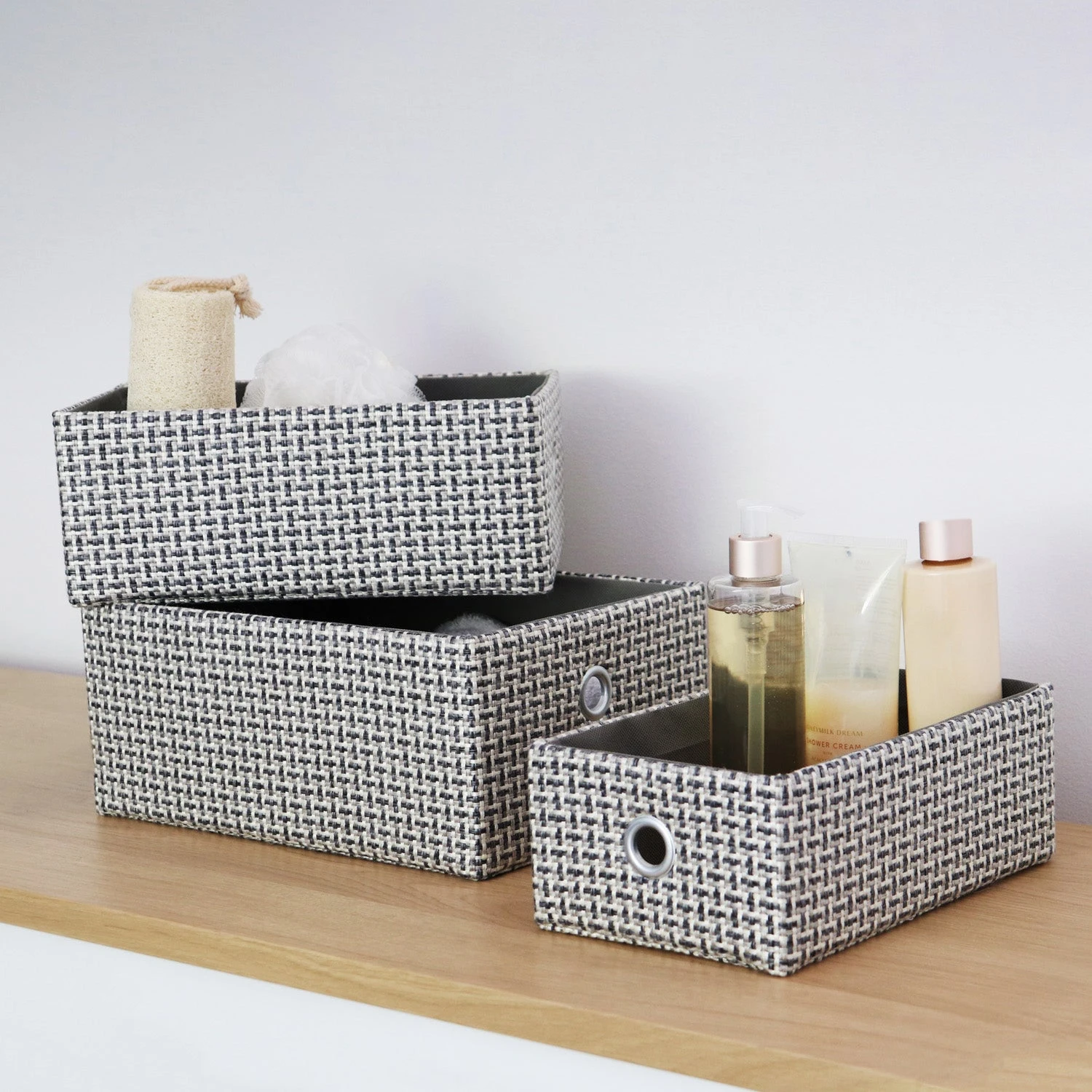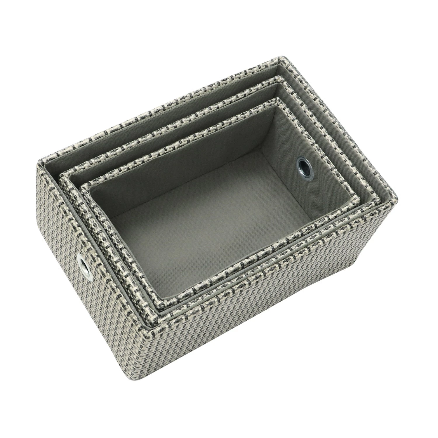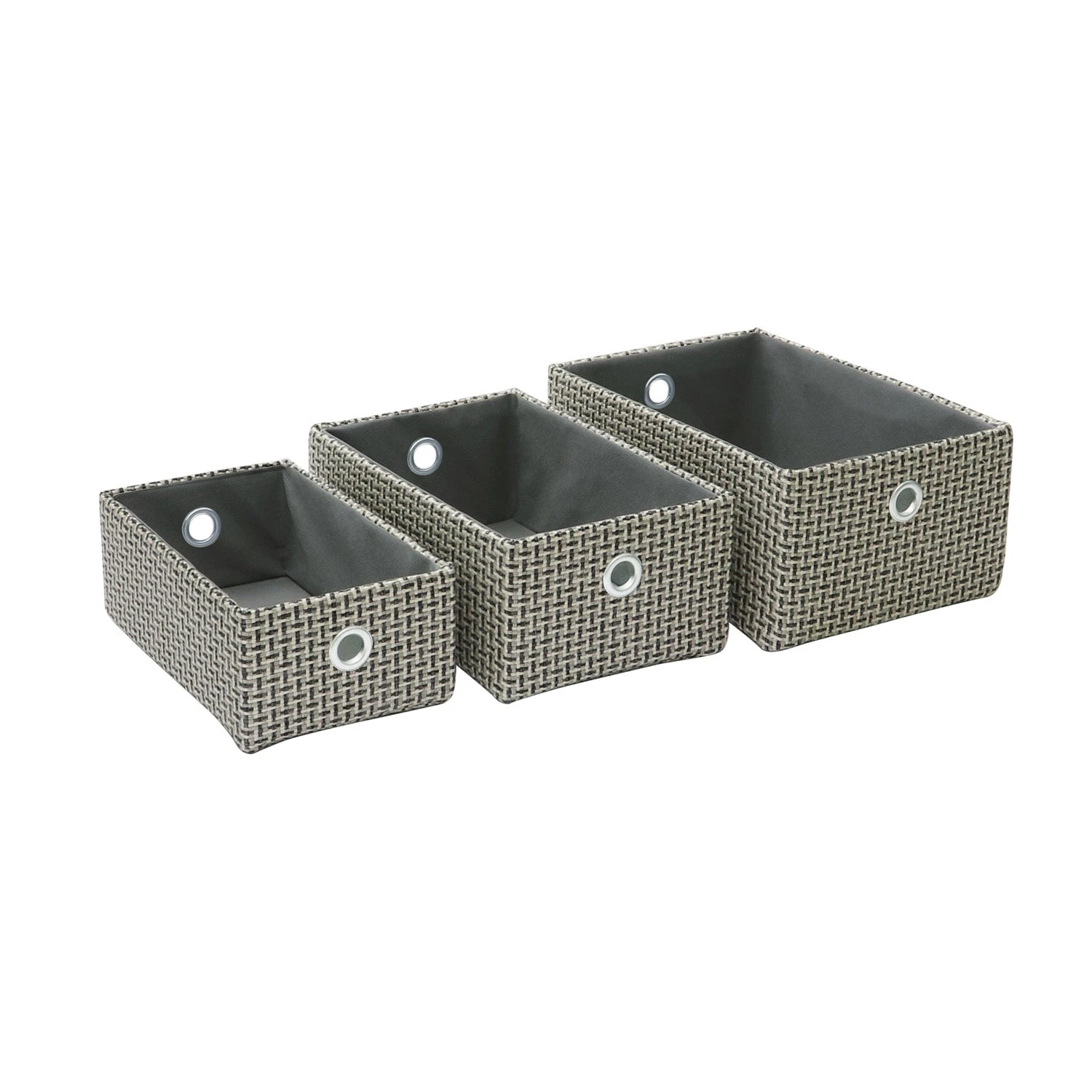 - Complete set of 3 rectangular storage baskets.