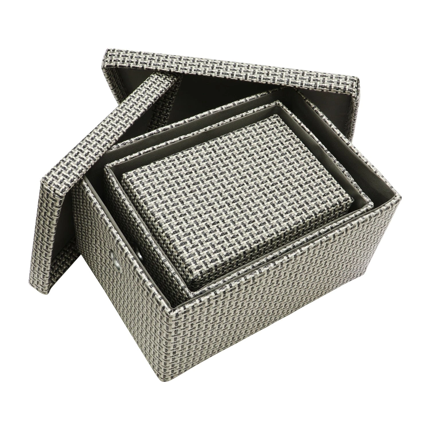 Our Silva storage collection reflects our woven heritage with a striking basket weave fabric in muted grey tones, creating a dog tooth effect, ideal for any interior decor.