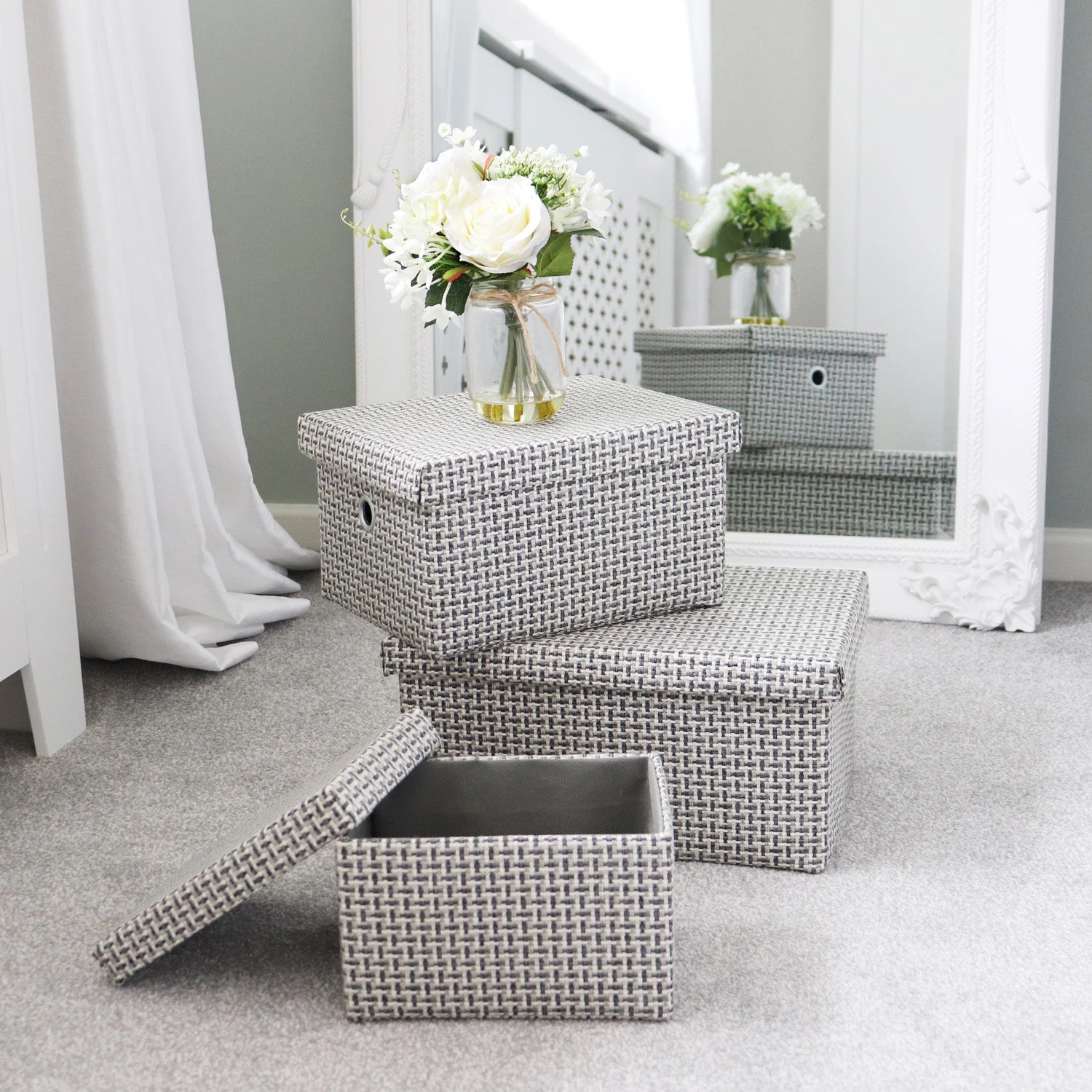 These lidded storage boxes are really versatile and you can use them for storing bits and pieces around the home such as in bedrooms, living room, playroom or utility room.