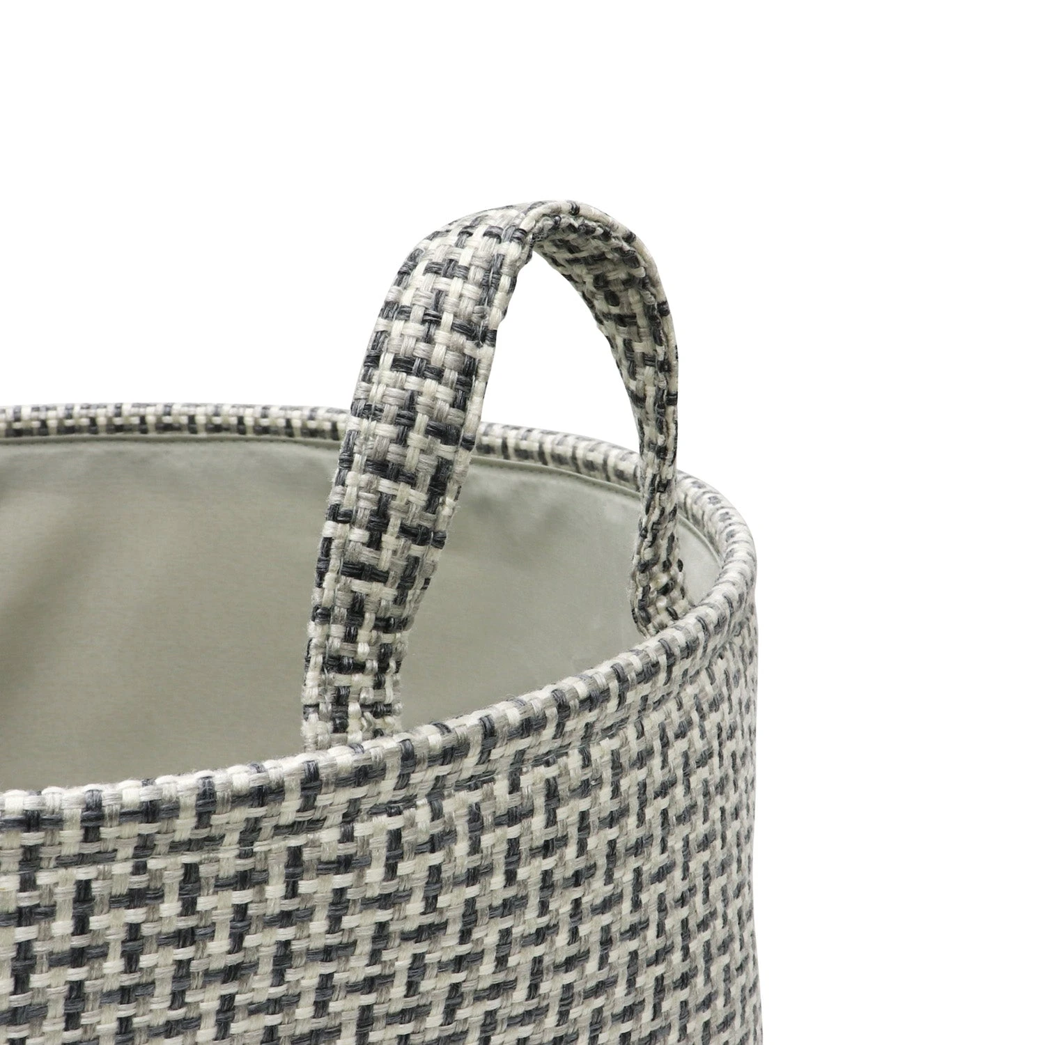 Our Silva storage collection reflects our woven heritage with a striking basket weave fabric in muted grey tones, creating a dog tooth effect, ideal for any interior decor.