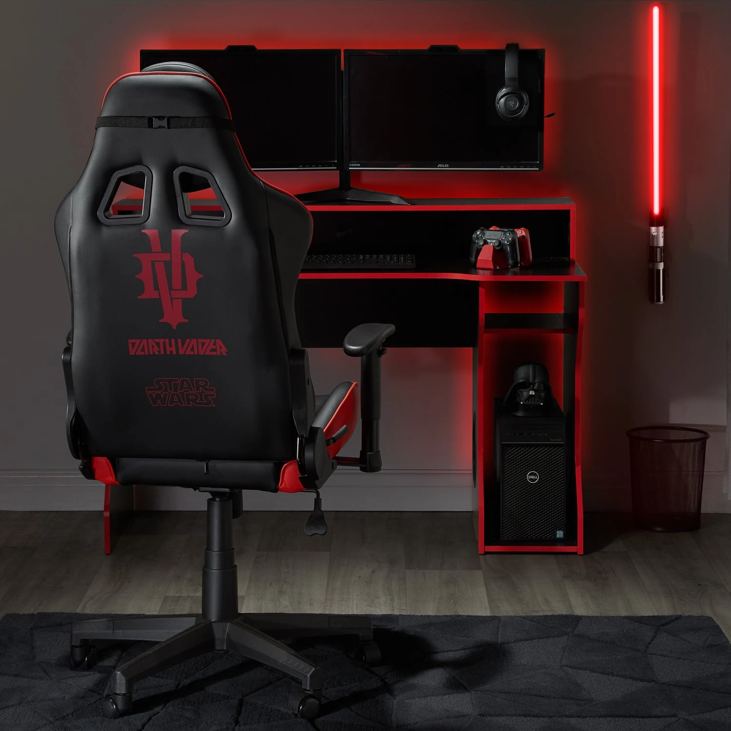 The Darth Vader computer gaming chair is ergonomically designed for hours of gaming comfort. Featuring a Darth Vader head as a headrest, and a fully adjustable, swivel and lock mechanism seat which offers enhanced support and stability during those longer gaming sessions.