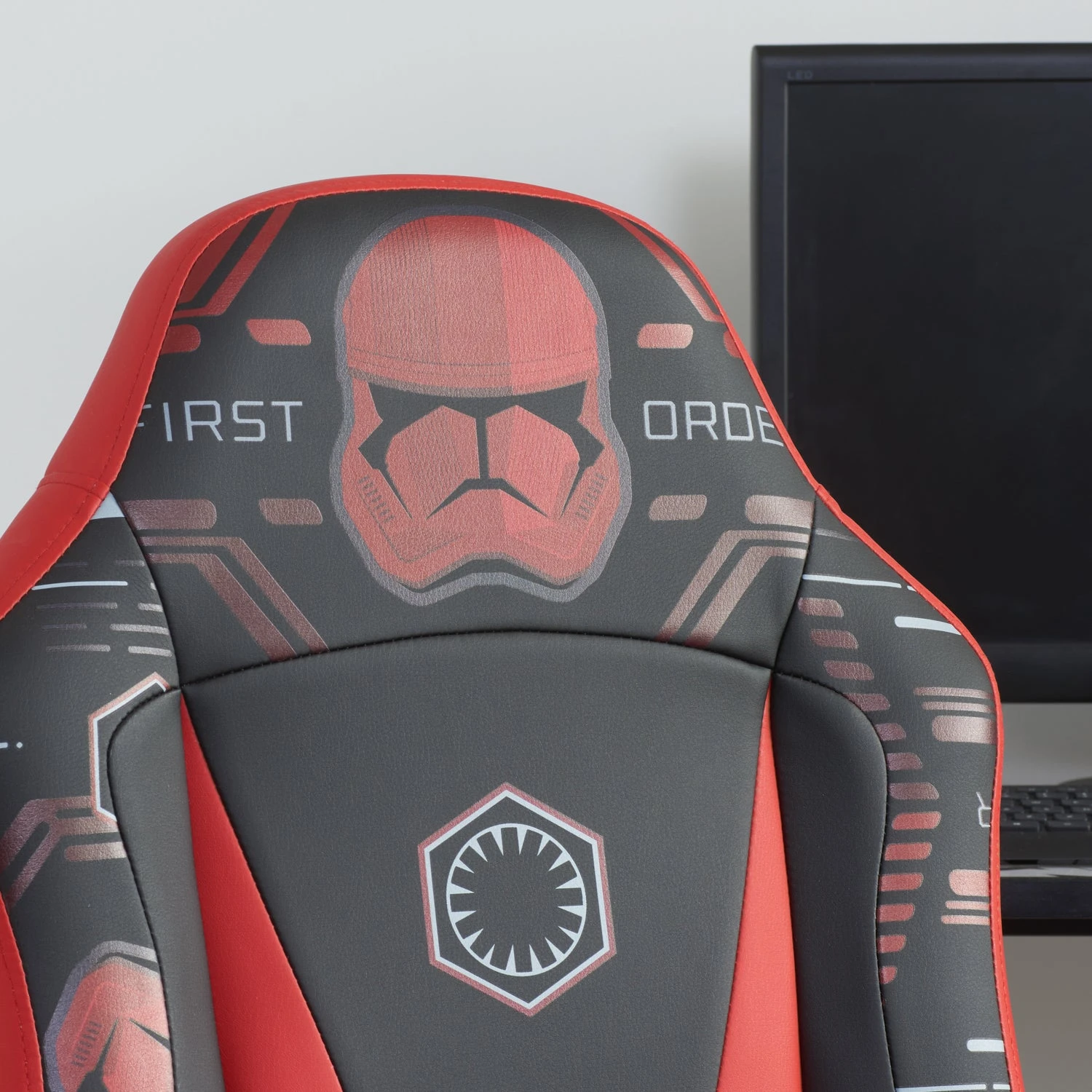 The chair extends from 98.5cm to 108cm. This Star Wars themed gaming chair is covered in faux leather and features the imperial crest as well as a Sith trooper pattern making it a fine addition to your bedroom or office.
