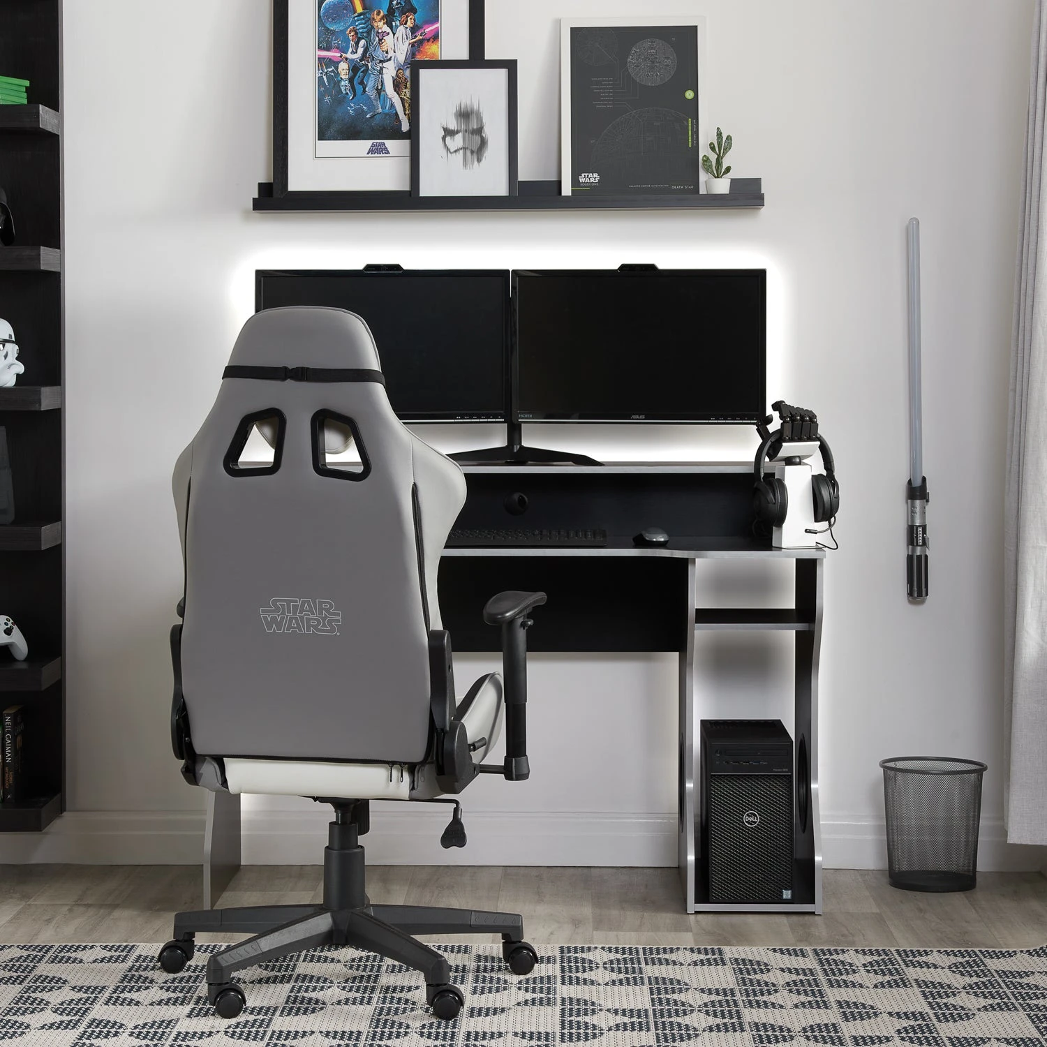 Featuring a stormtrooper head as a headrest, and a fully adjustable, swivel and lock mechanism seat which offers enhanced support and stability during those longer gaming sessions. This Star Wars themed gaming chair is covered in faux leather and features the elite shock trooper making it a fine addition to your bedroom or office.