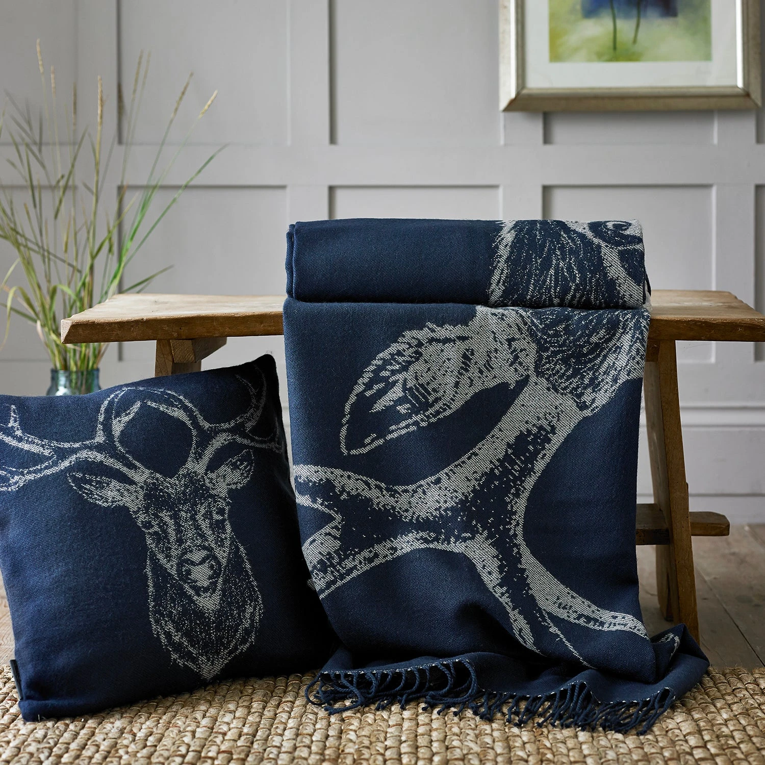 Made from soft and sumptuous yarns featuring the majestic stag, this throw is a tasteful addition to your home or outdoor living space. Reminiscent of the highlands of Scotland and in beautiful colours, this ultra soft blanket with a traditional tassled trim is a timeless piece to be treasured.