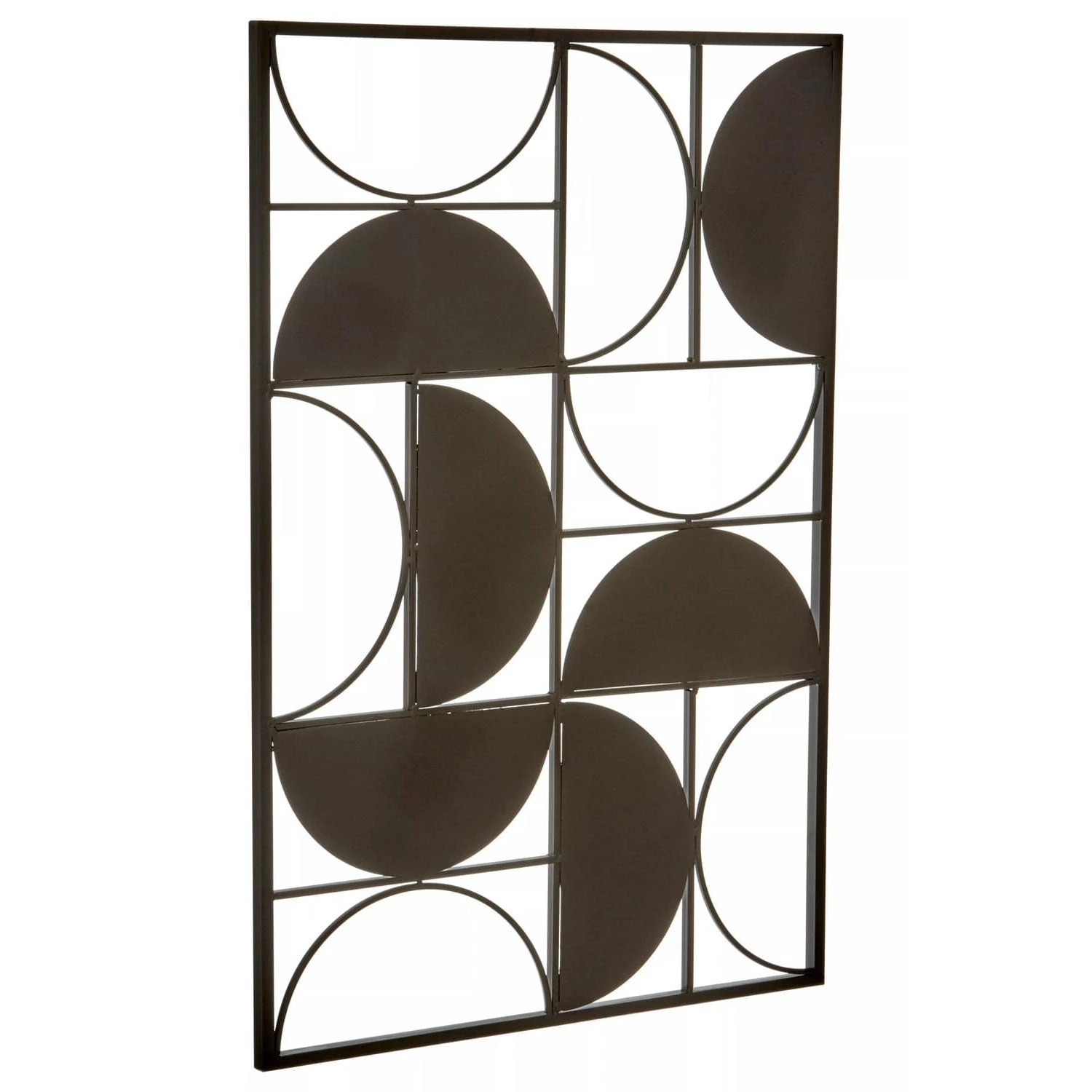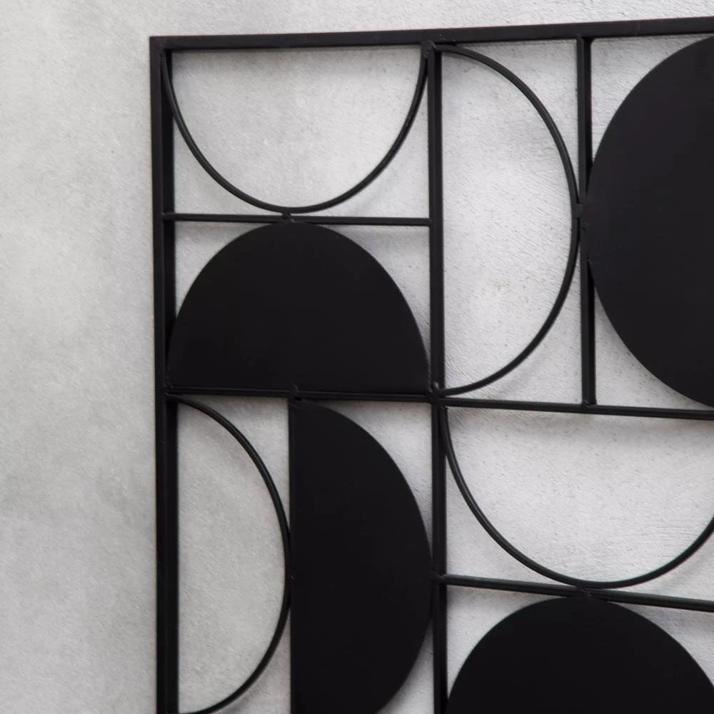 This wall art will look attractive hanging on a wall with its minimal rectangular frame. Made from iron, it features a series of cutout semicircle pieces which combine to form symmetrical shapes. Finished in sleek black, this contemporary piece will add a touch of art deco design on the wall with its bold design.