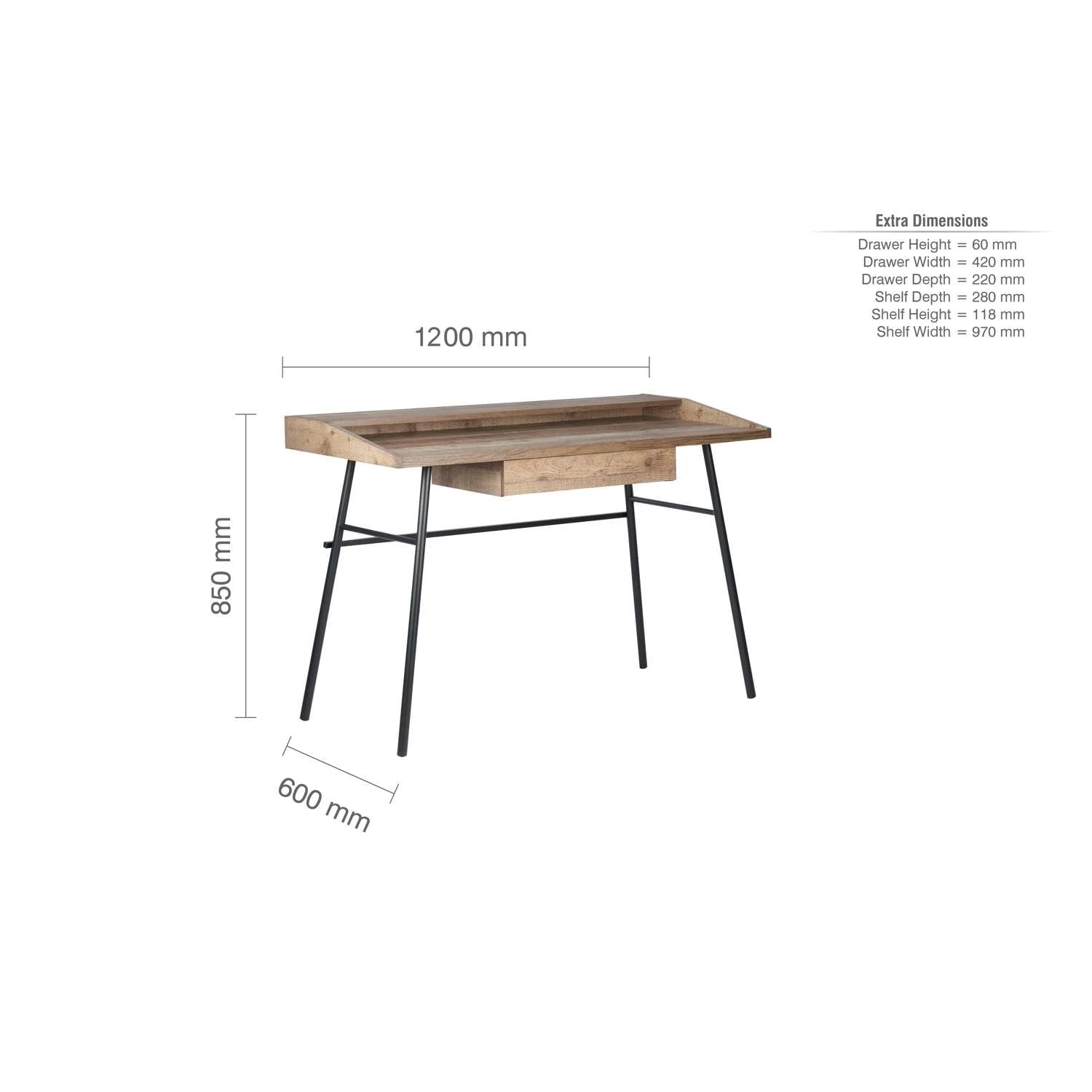 Our Urban range radiates industrial chic. The Urban 1 Drawer Office desk with shelf provides ample work area for a home office and features 1 hidden drawer for for paperwork.