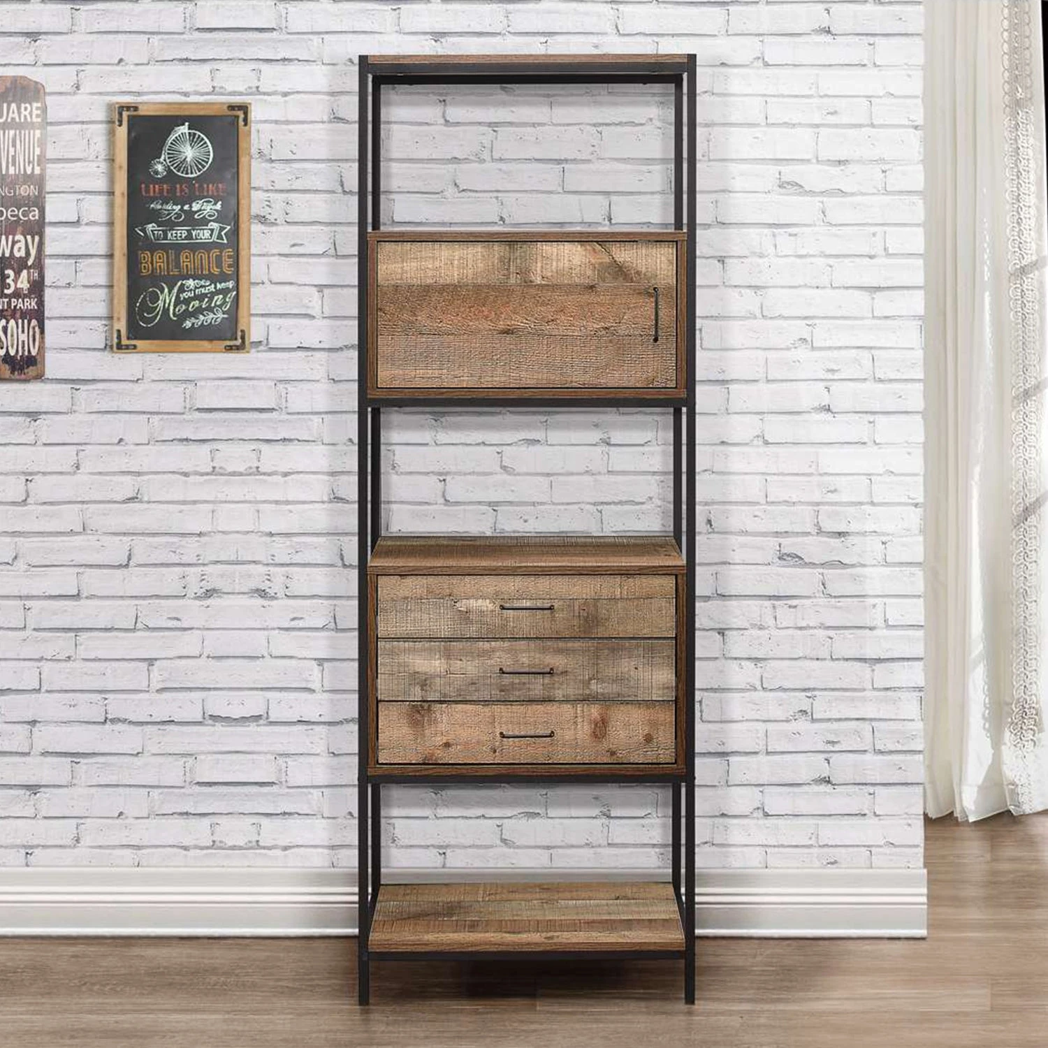 Our Urban living room range radiates industrial chic. The Urban 3 Drawer Shelving Unit provides a spacious storage solution for all books and files, featuring 3 handy drawers and one closed cabinet.