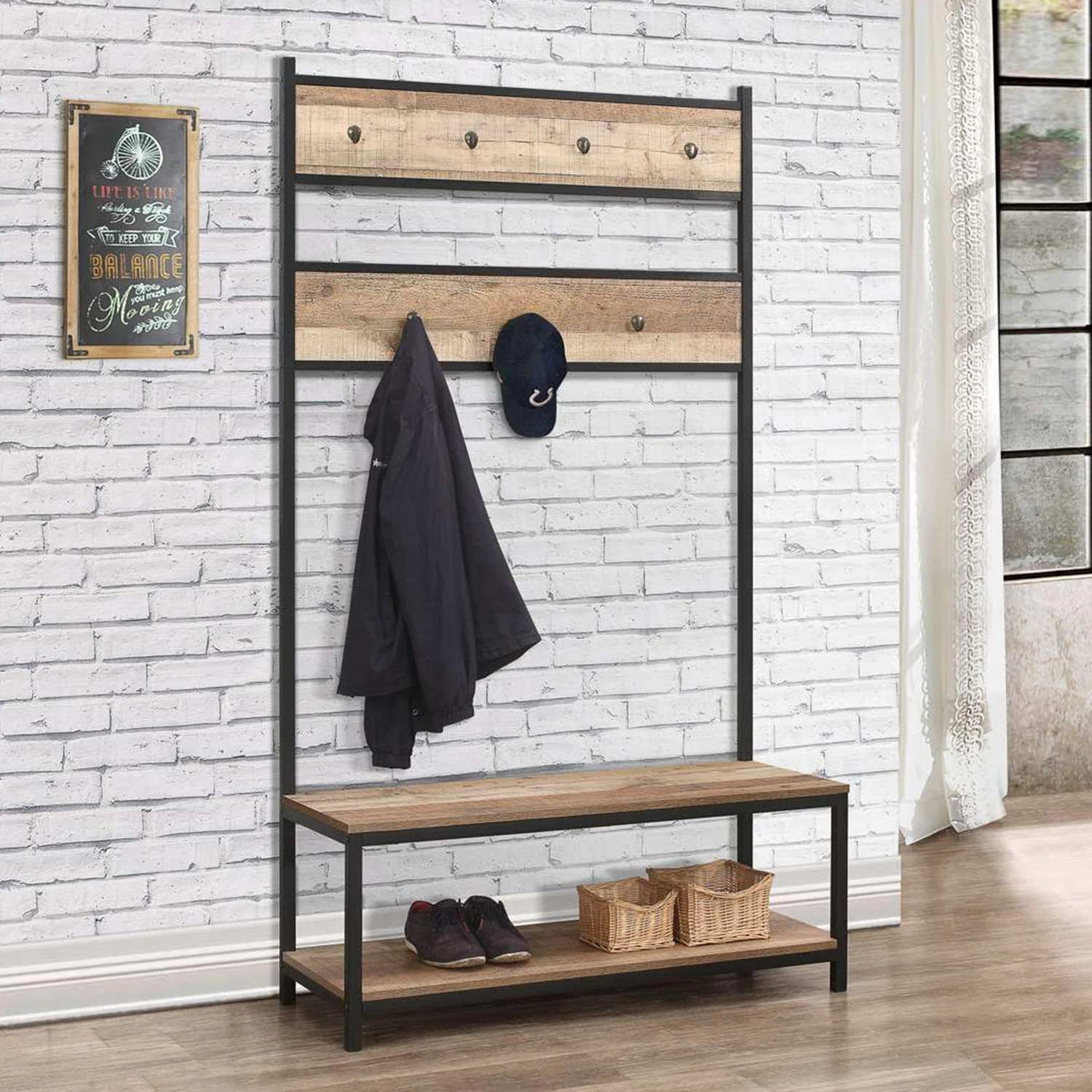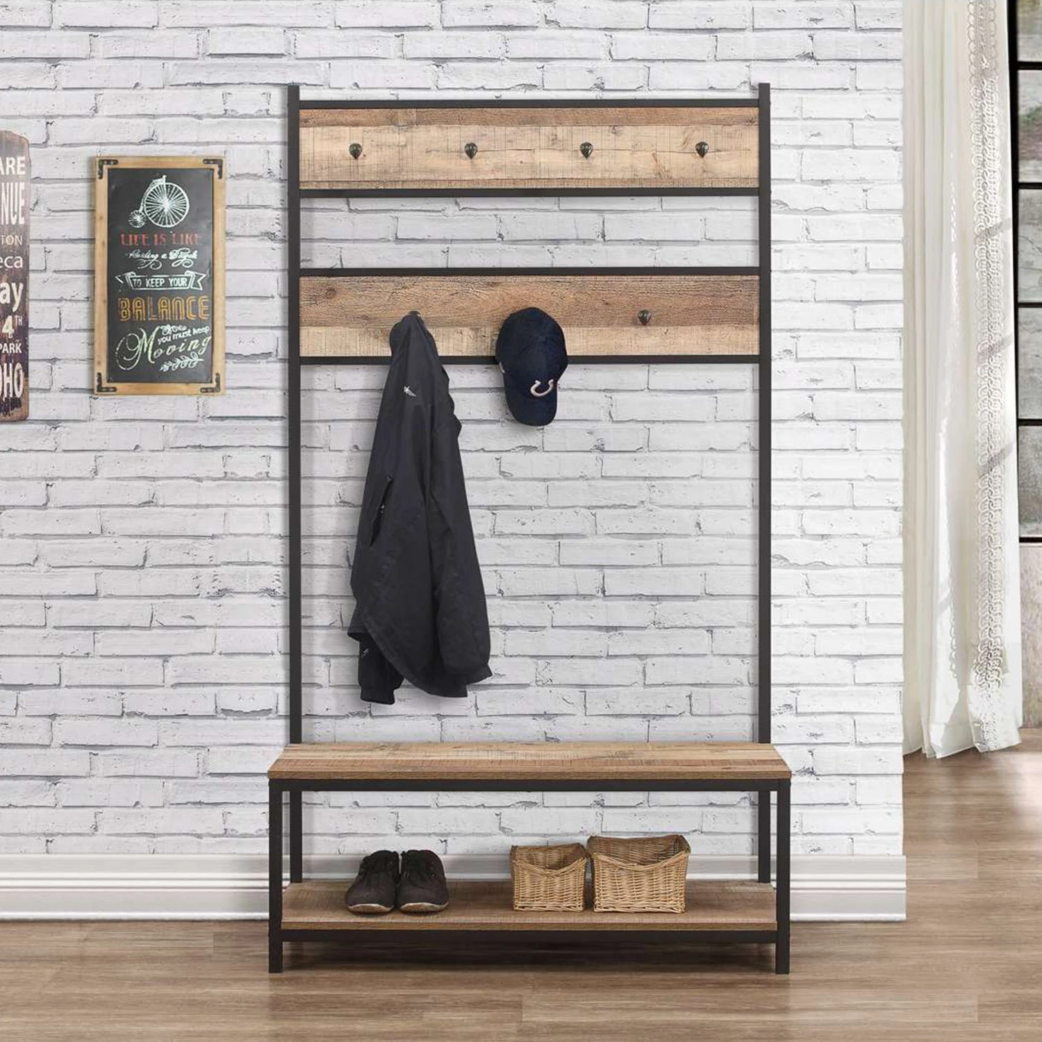 Our Urban occasional range radiates industrial chic. With plenty of storage for coats, hats and footwear, the Urban coat rack & bench features 7 hooks at two heights, a useful bench and a shoe shelf beneath. Ideally located in a hallway or porch, everything will be kept neatly close at hand for those mornings when you’re rushing out the door.