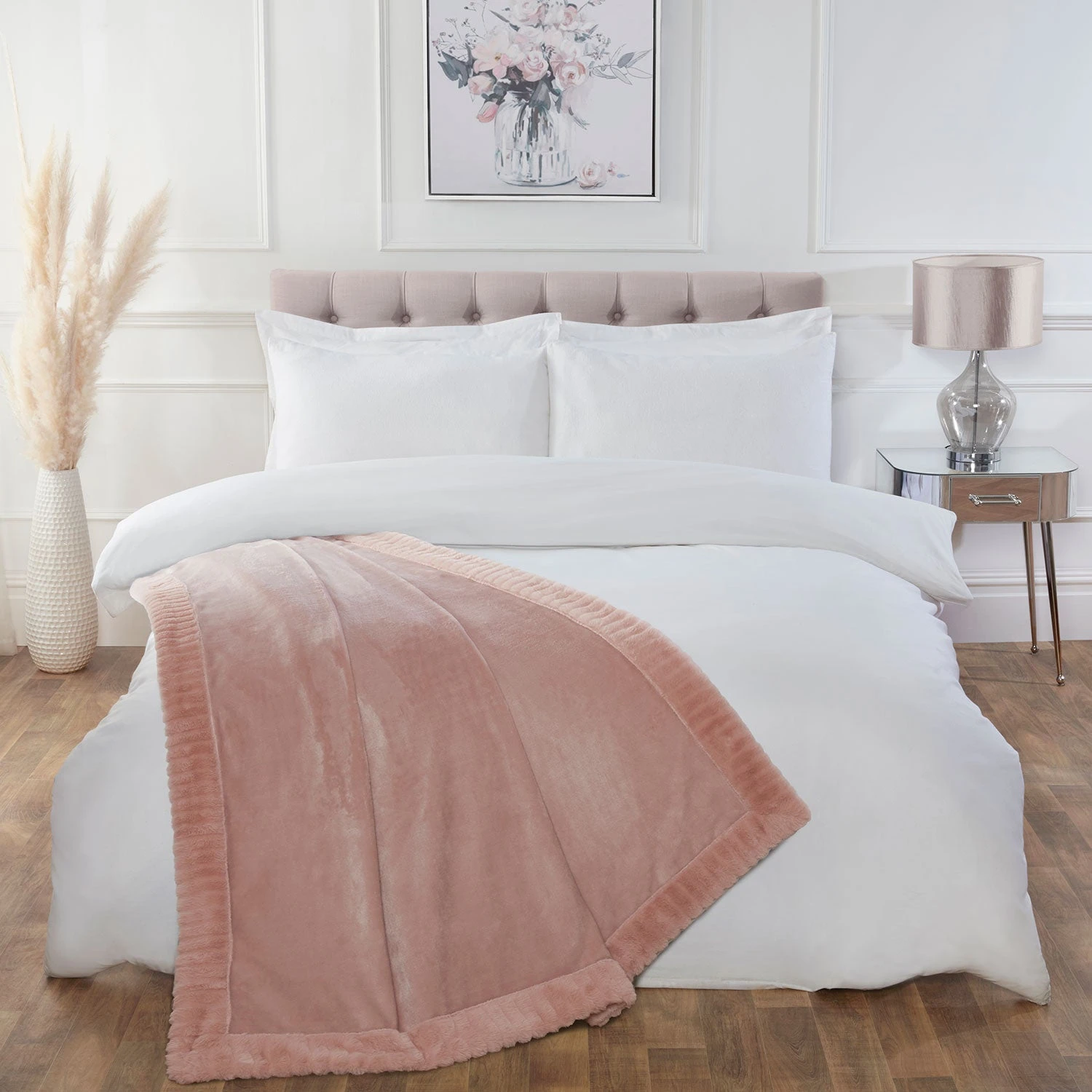 Introducing our gorgeous Vermont Blush Pink Fleece Throw with Faux Fur Trim – a beautiful piece of luxury ideal for the winter season and beyond. This sumptuous addition to your home is crafted from a wonderfully super soft fleece material with faux fur edging for added elegance and sophistication.
