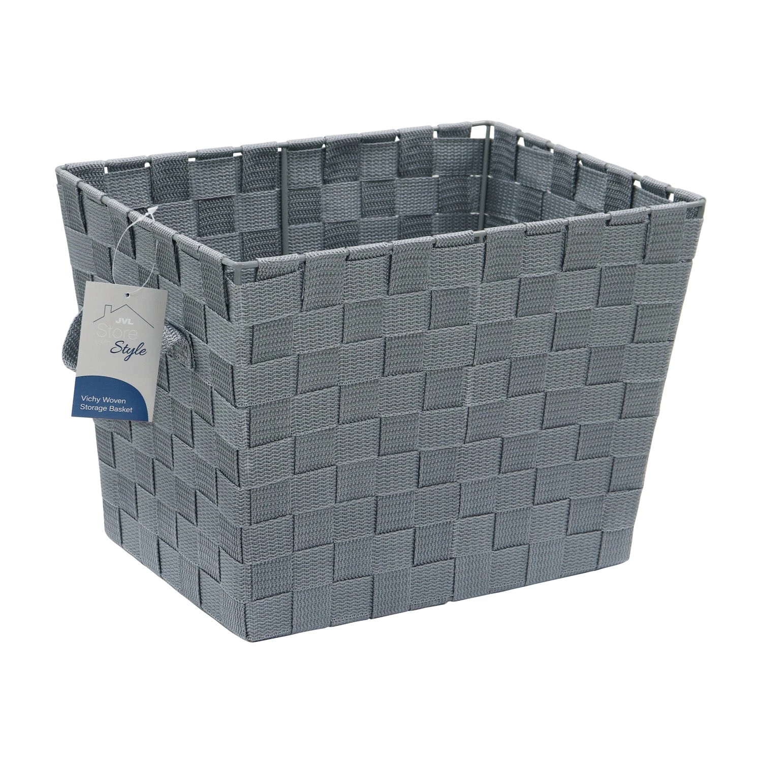 Our Vichy storage collection features a chunky yarn, plain weave fabric in a steel grey colour. The fabric weave is strong but lightweight and looks great as a decorative accessory.