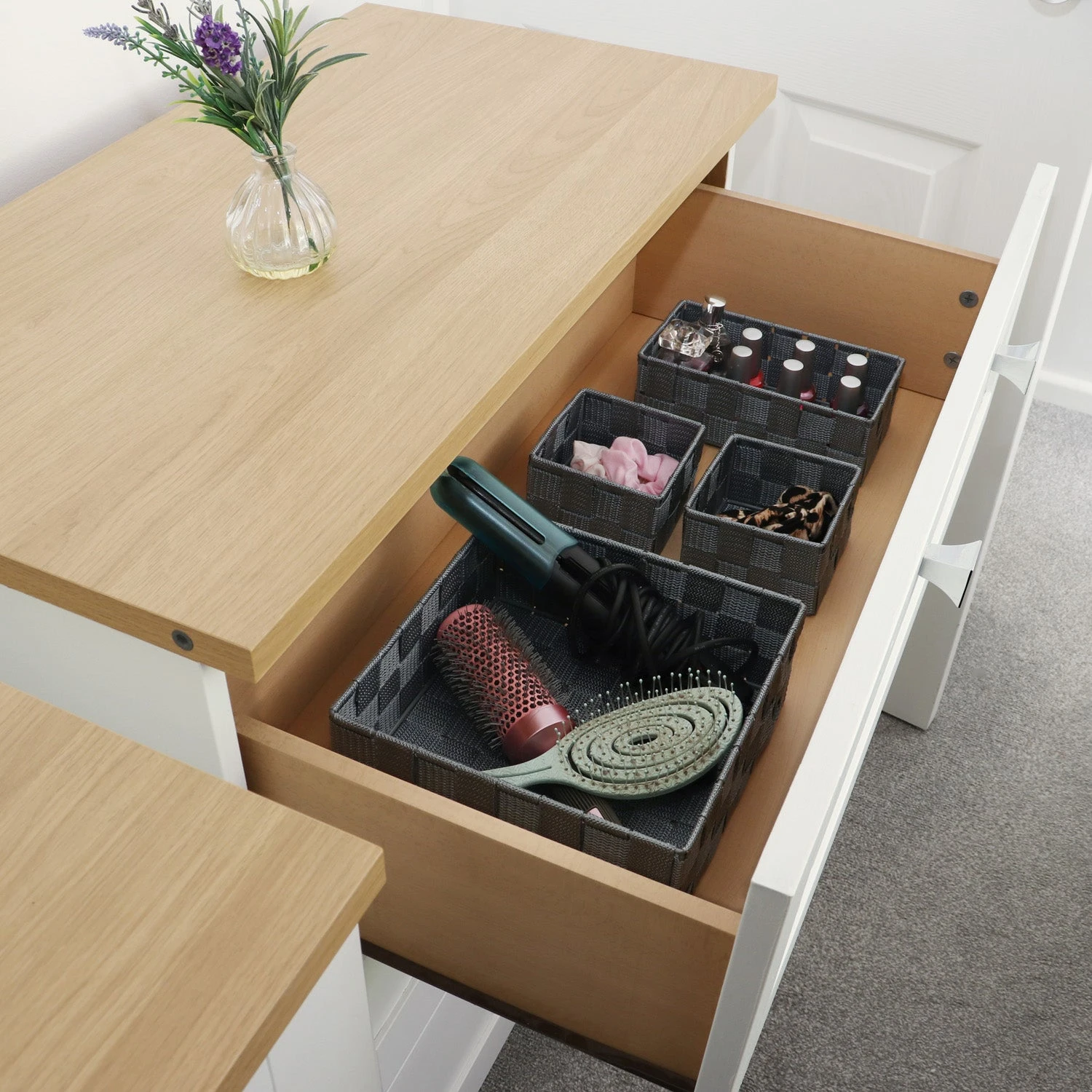 These versatile storage baskets can be used for storing bits and pieces around the home such as in a bedroom, living room, playroom, office or children’s bedrooms. They’re ideal for small garments, jewellery, make up and more.