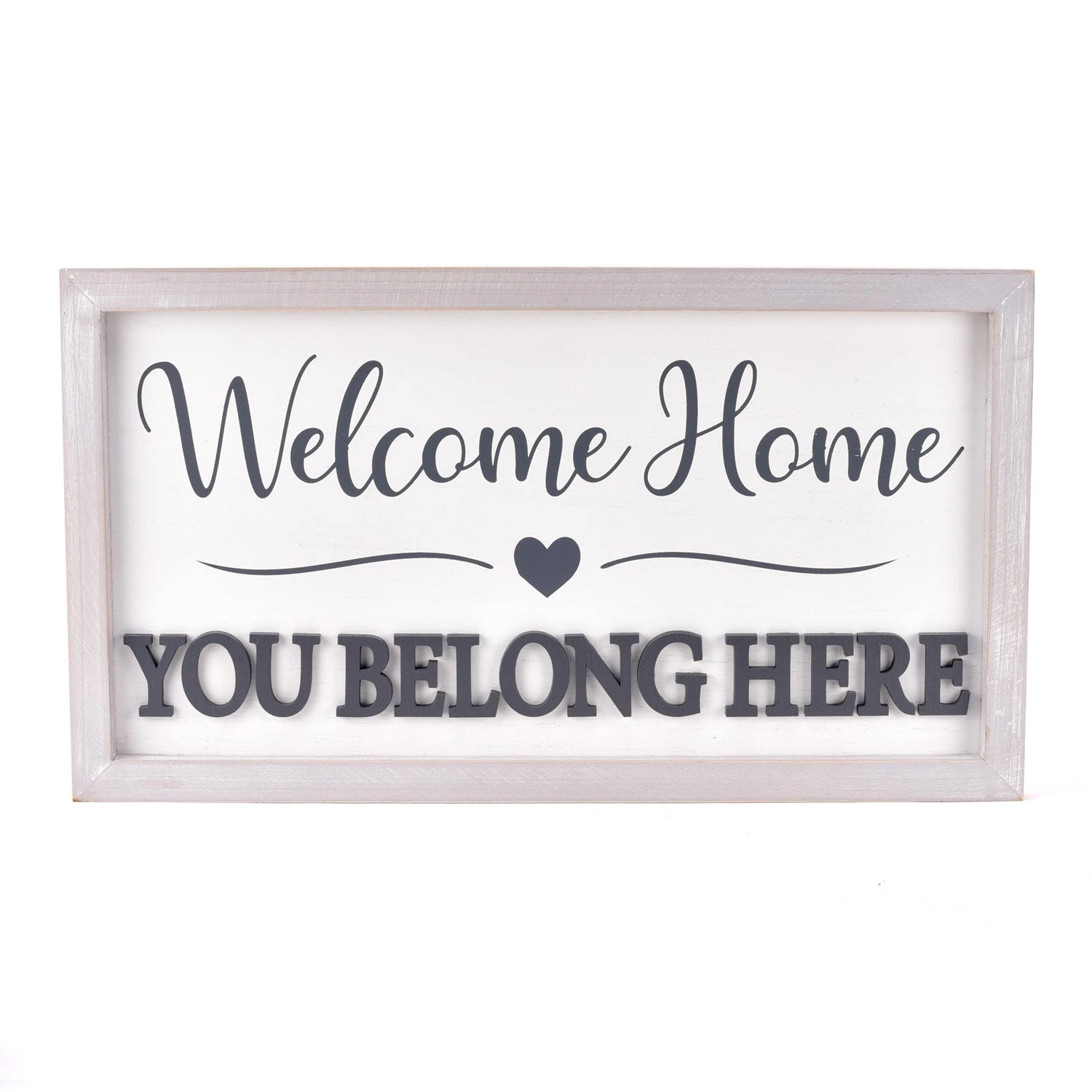 A caring ‘Welcome Home’ wooden wall plaque to celebrate close loved ones.