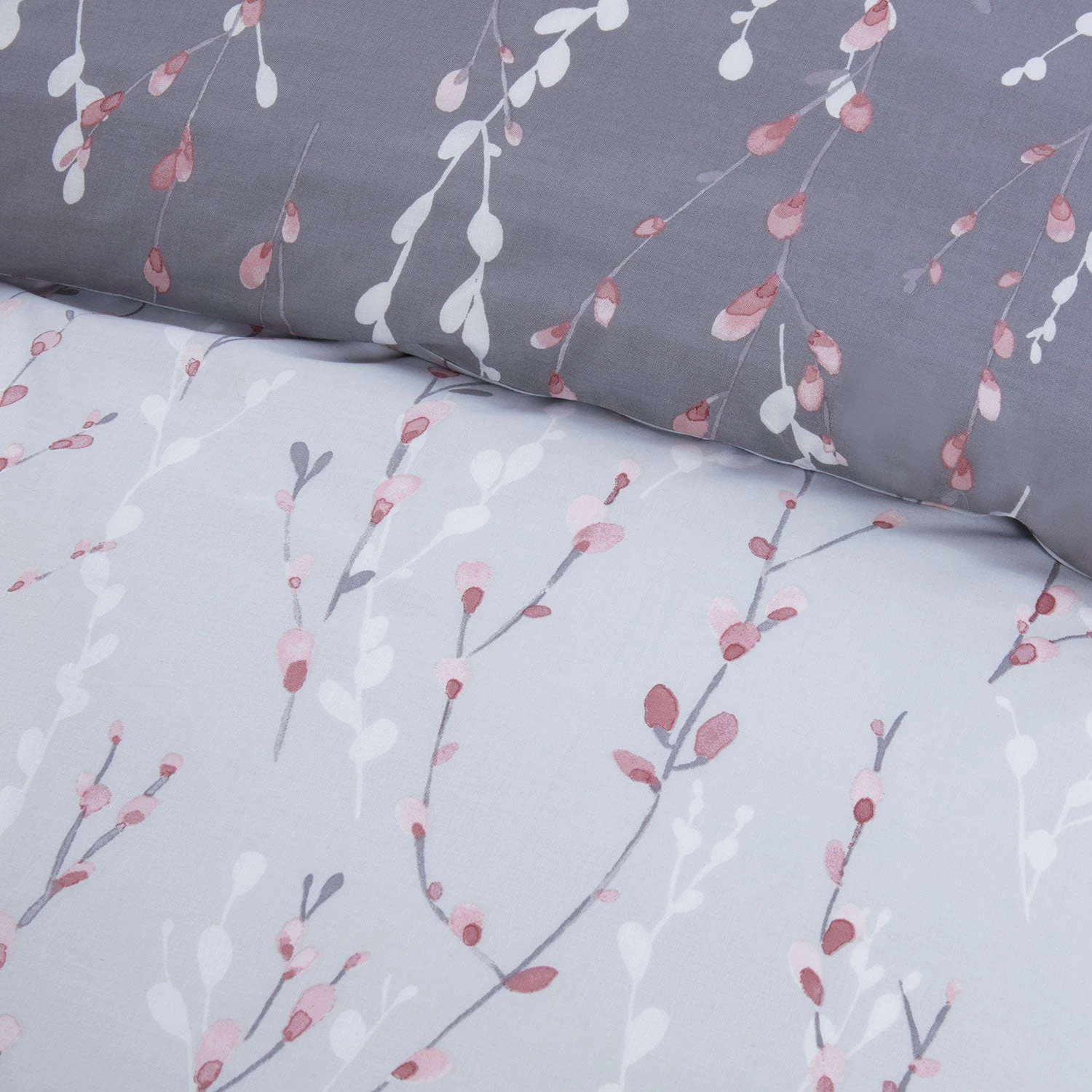 Decorated in a detailed floral design, this fresh grey duvet set has a calming and modern look. The bolder reverse design on a darker background offers a second bedroom look.
