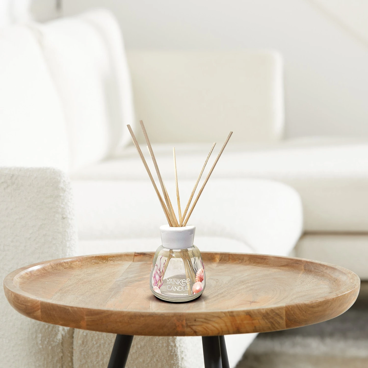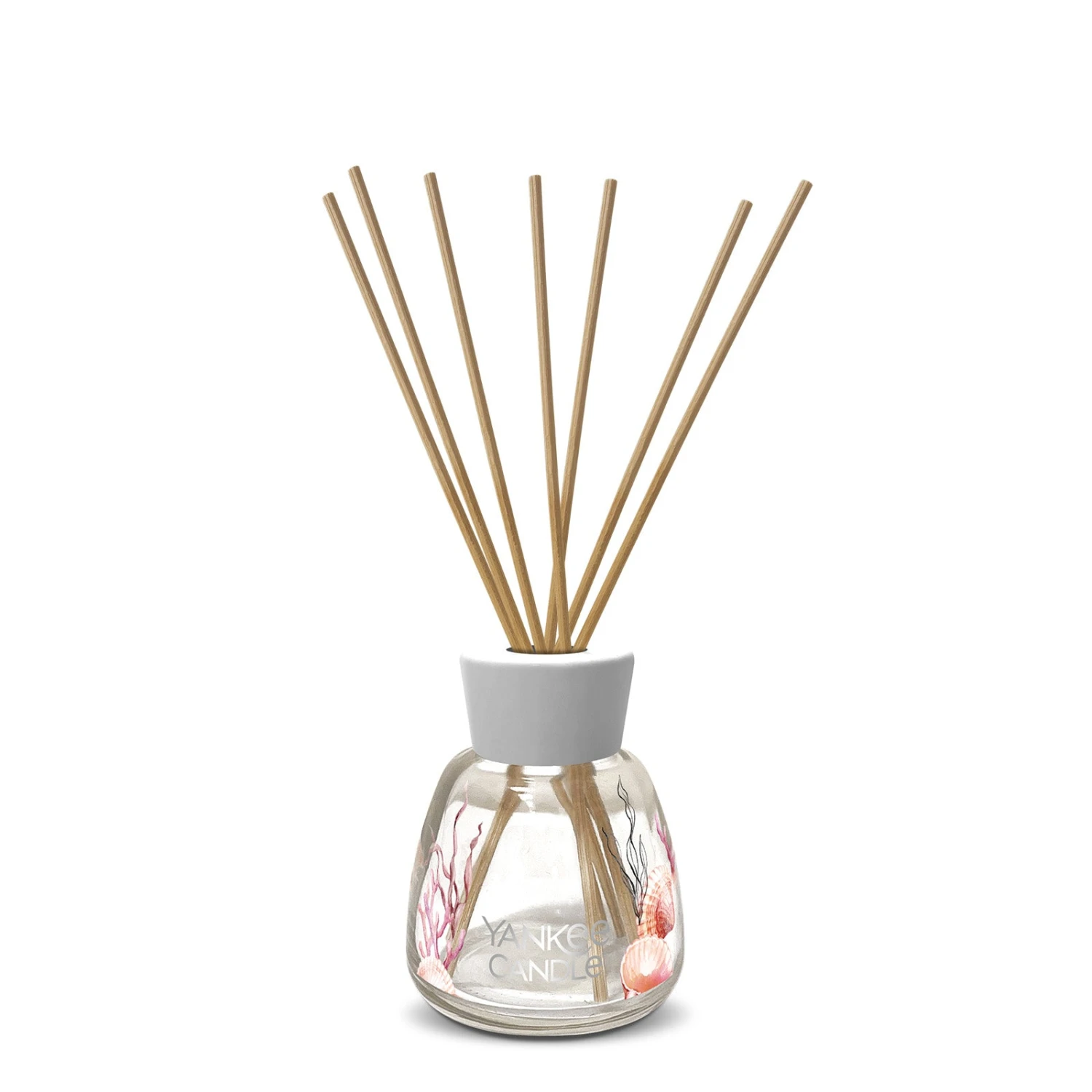 Introducing the Yankee Candle Pink Sands Reed Diffuser – a captivating scent that transports you to an exotic island getaway. Immerse yourself in a delightful blend of vibrant citrus, fragrant florals, and alluring vanilla. Discover an invigorating top note of citrus, melon, and berry, followed by a captivating mid note of osmanthus.